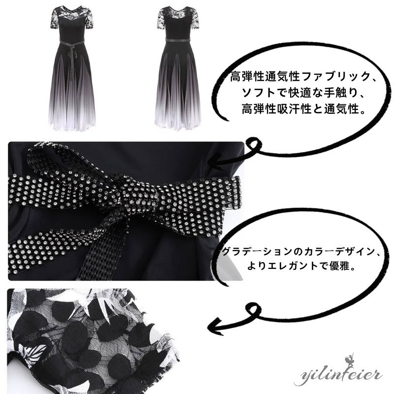 女性ワルツダンスドレス大きい裾ワルツに向きセクシーな踊りドレス ダンスドレス 舞踏 踊り ドレス 発表会用ドレス ワンピース 舞台服 社交ダンスドレス