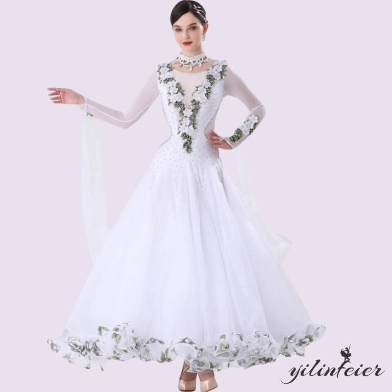 ラテンダンス発表会用ドレス ワルツ ラテン系 豪華 ダンスドレス ワルツ用 社交ダンスドレス 発表会用 競技ダンス 豪華 大合唱 フラワー ラテン