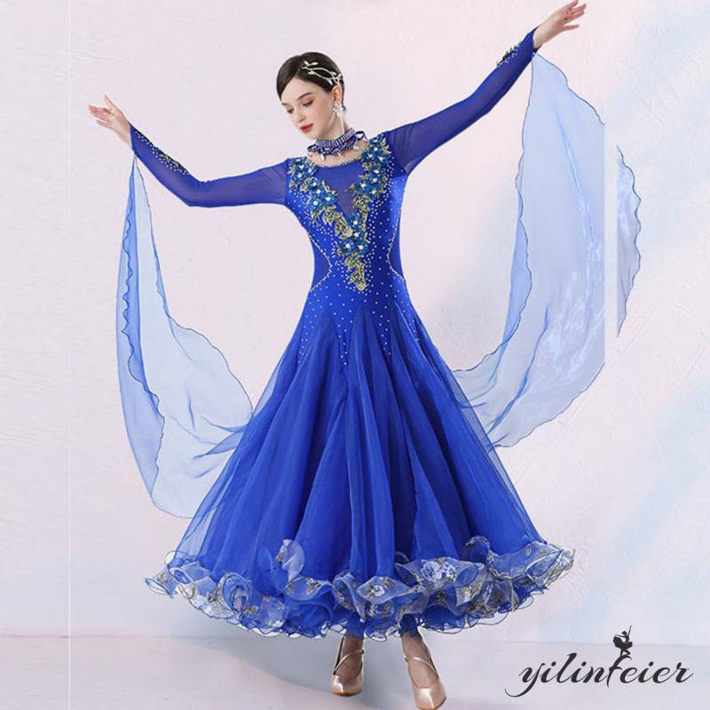 社交ダンス レディース ダンスドレス 衣装 ワルツ ワンピース イベント 大きい裾 モダン ドレス 社交ダンス衣装 広がる裾 スタンダード レッスン着 演出用 高級感 踊りドレス 大人気