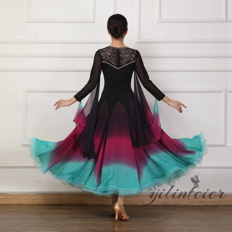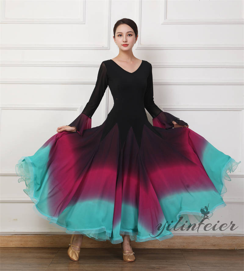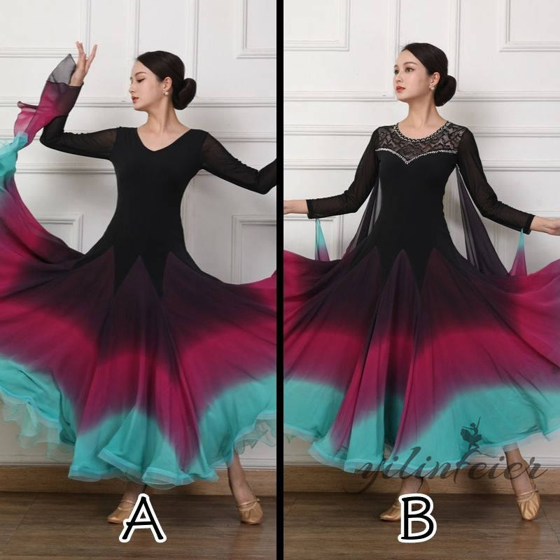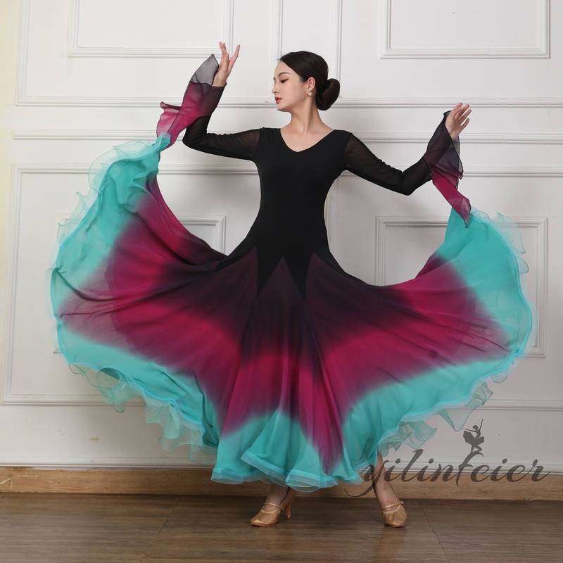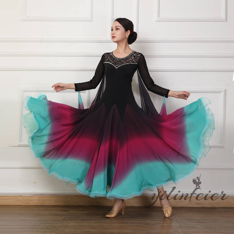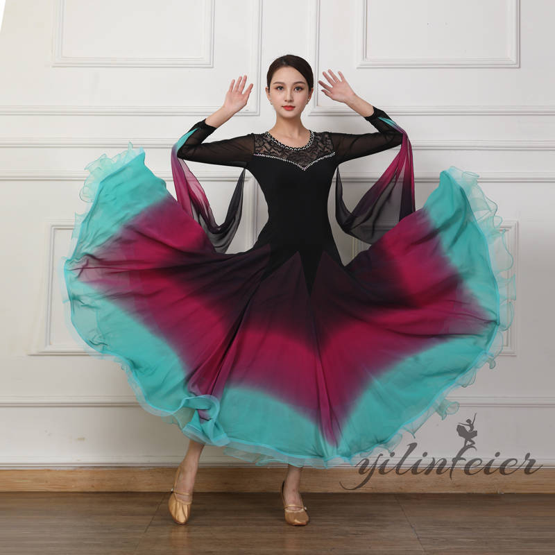 社交ダンス レディース ダンスドレス 衣装 ワルツ ワンピース イベント 大きい裾 モダン ドレス 社交ダンス衣装 広がる裾 スタンダード レッスン着 演出用 高級感 踊りドレス 大人気