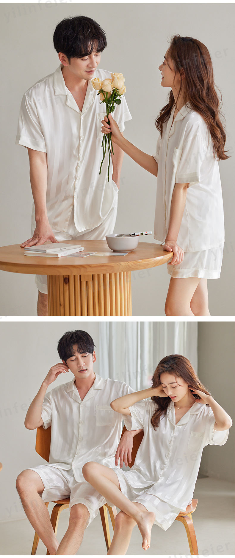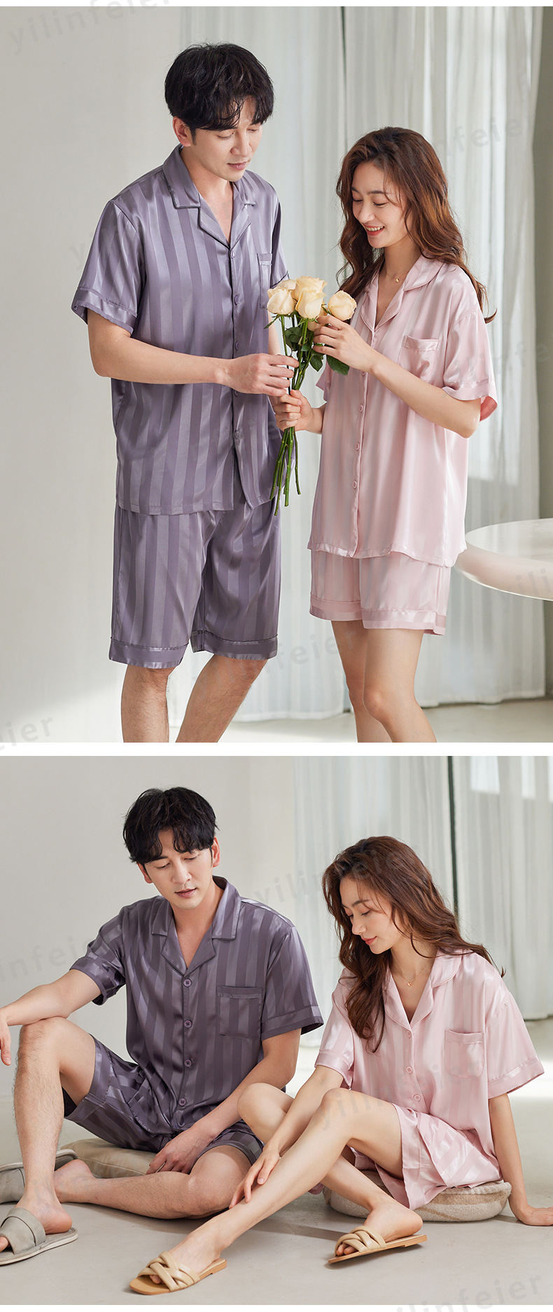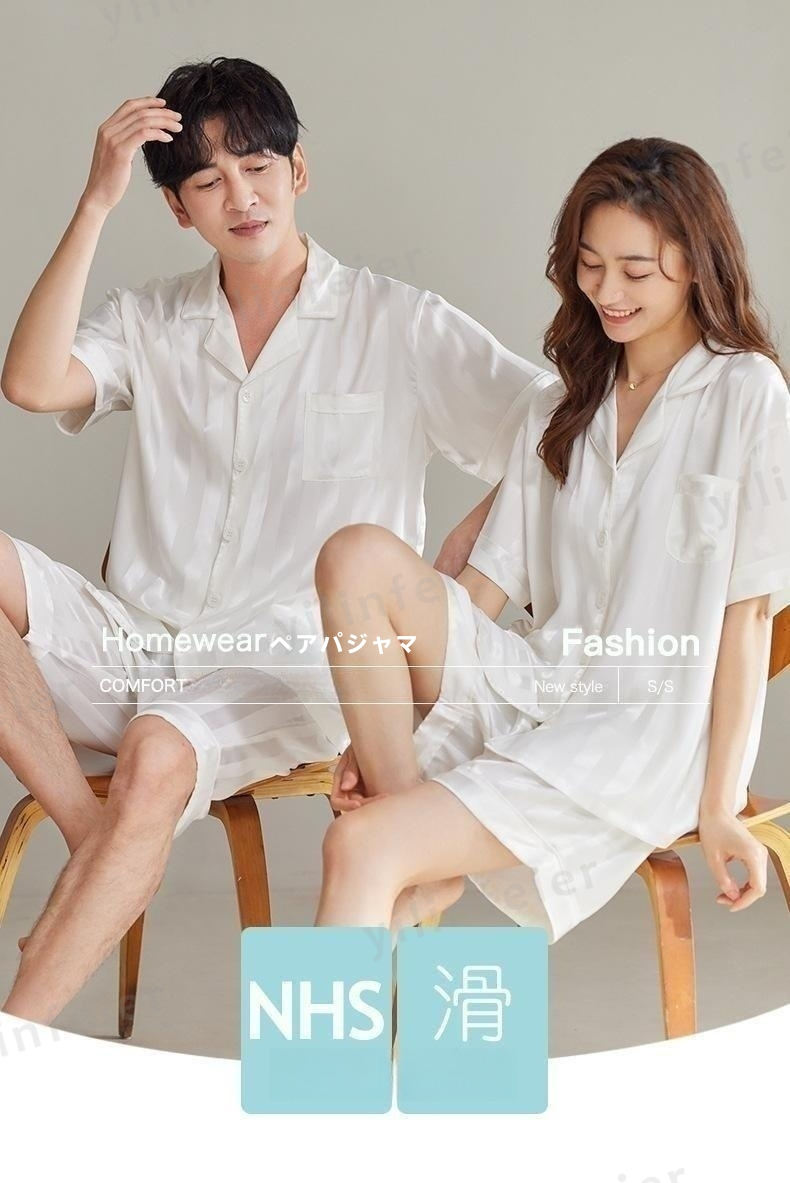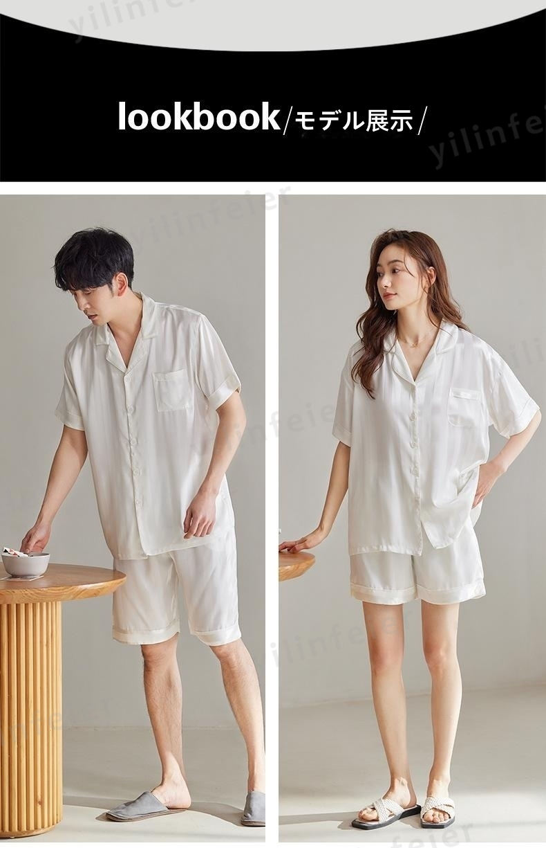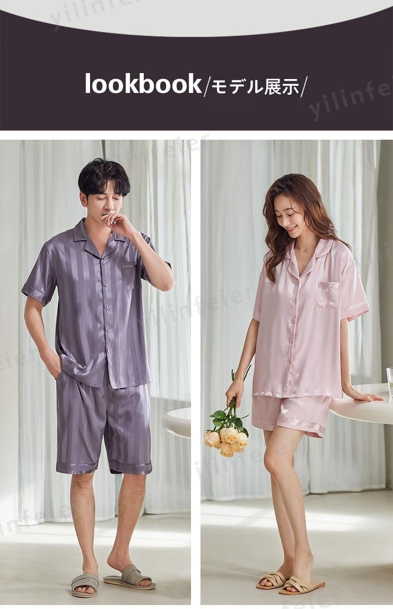 ペアパジャマ シルク風 シルク ペアルック パジャマ 寝間着 プレゼント メンズ パジャマ おしゃれ 半袖 結婚祝い プレゼント おしゃれ おすすめ 贈り物 ペア リゾート ゆったり 通気性