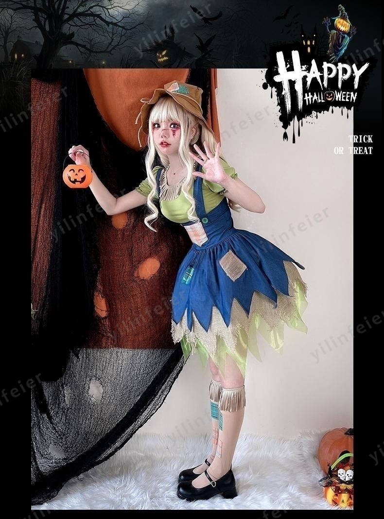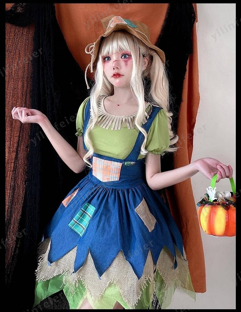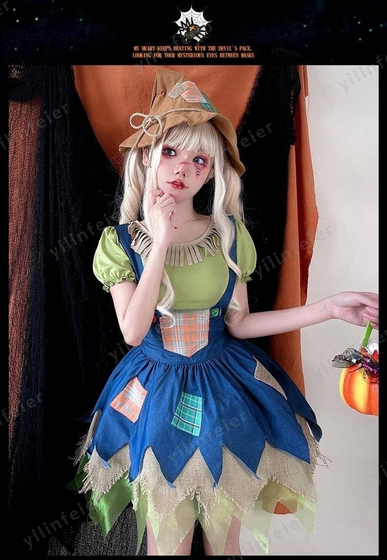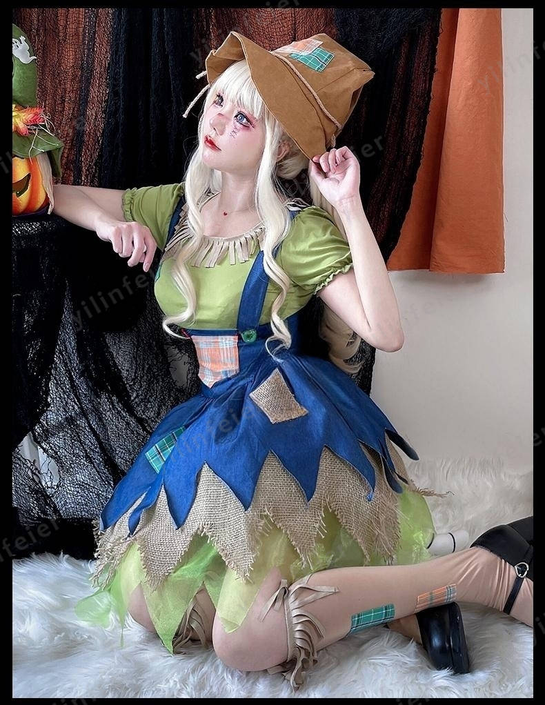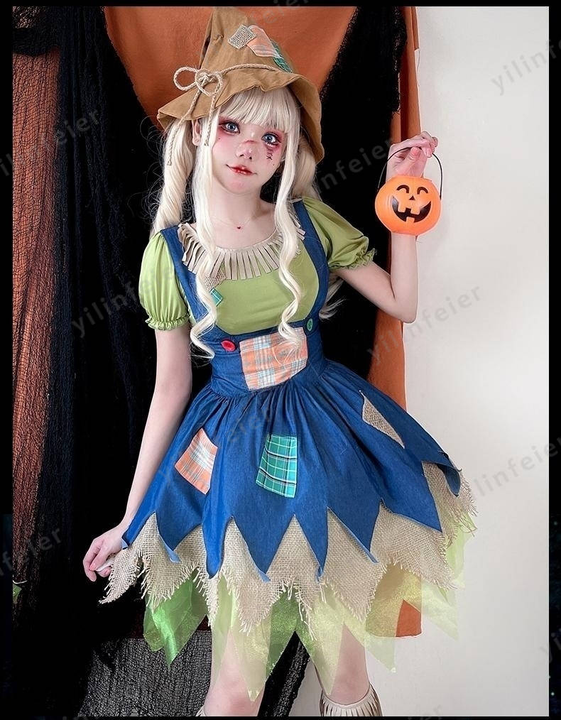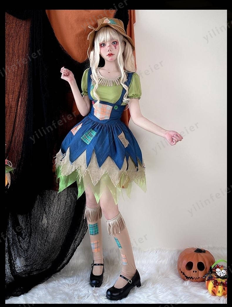 ハロウィン かかし 衣装 成人 案山子 コスプレ 大人用 女の子 帽子付き キャラクター コスチューム ハロウィン仮装 可愛い かわいい 童話 衣装 こども 万聖節 演出服cosplay