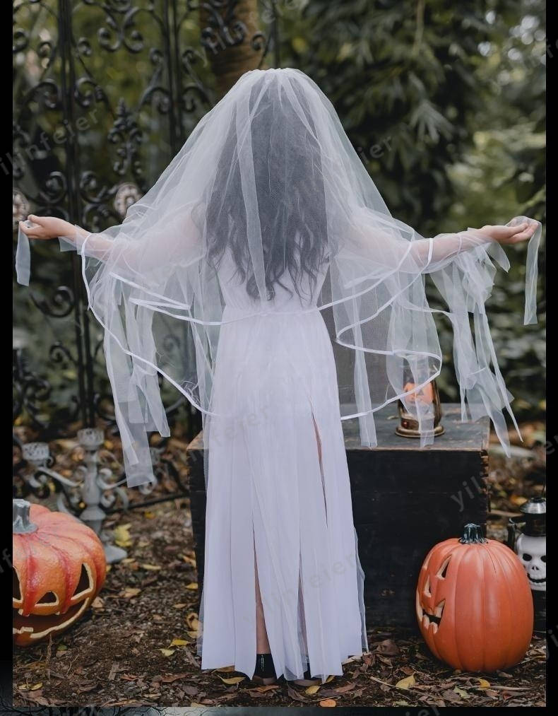 ホラーで大人な雰囲気を醸し出してくれる、ロング花嫁コスチューム。