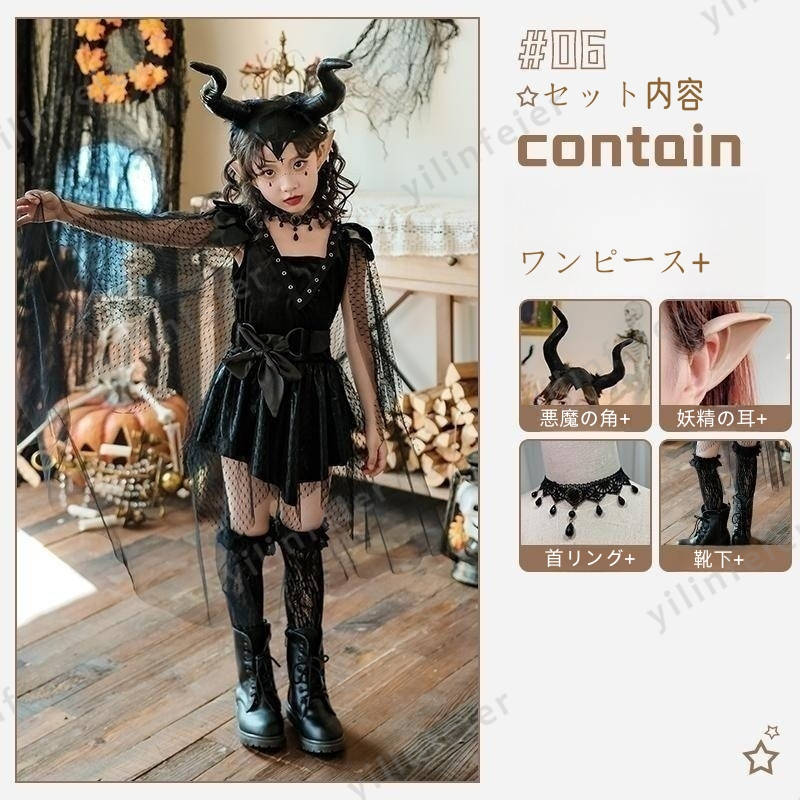 ワンピース+悪魔の角+妖精の耳+首リング+靴下