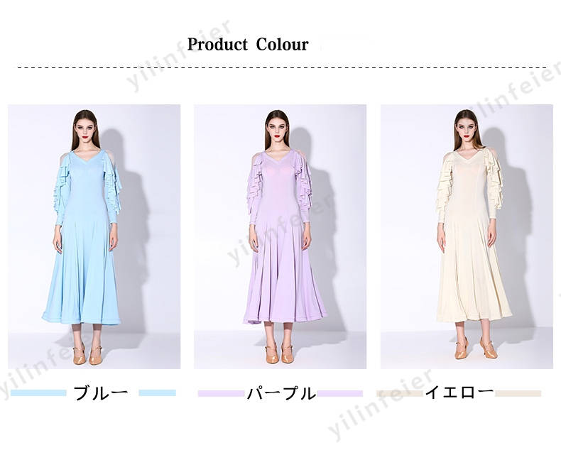 2XL/バスト:96~106cm ウェスト:76~80cm ヒップ:88cm 肩幅:40 着丈:130cm素材 強い弾力性の生地カラー パープル、イエロー、ブルー特微 着た時・歩いた時のシルエットがとても美しい。軽くてフレアもたっぷり入っているので綺麗に揺れます。ストレッチ素材で動きやすく、練習等におすすめのレディース社交ダンスウェアです特微 デザインが上品で、工芸が細かくて、本当の上品です。