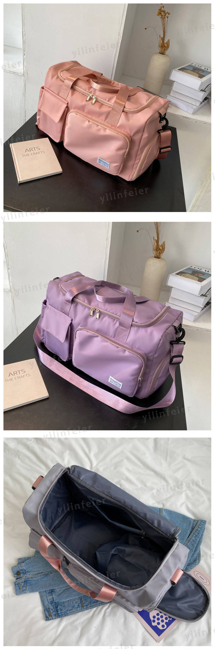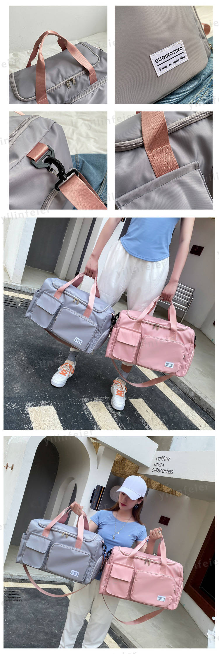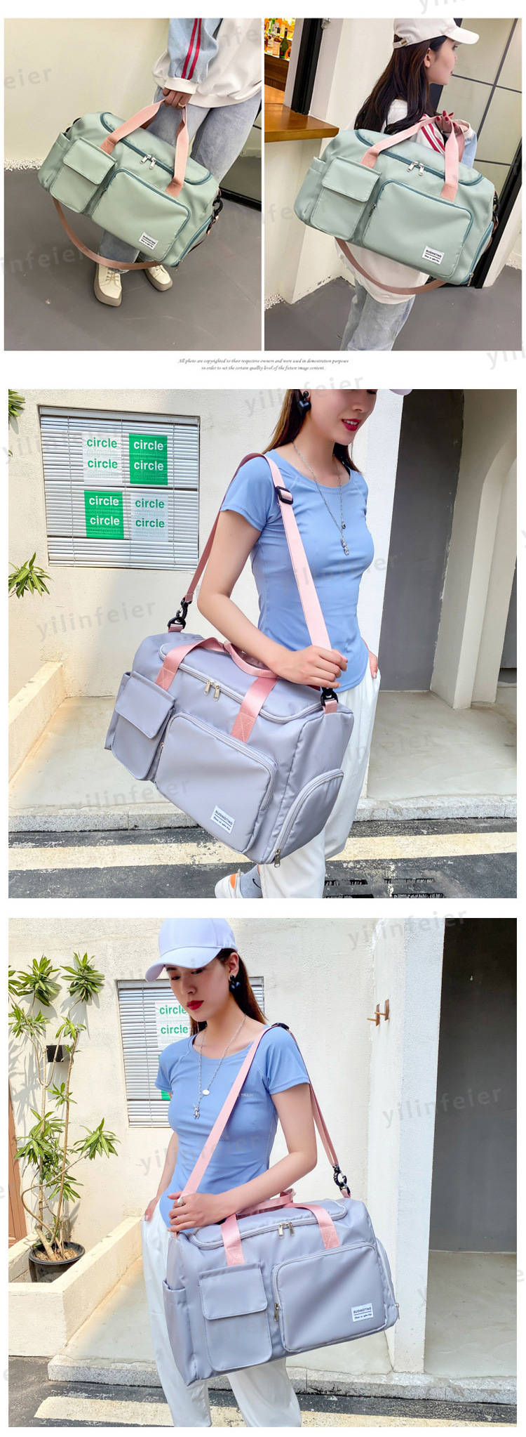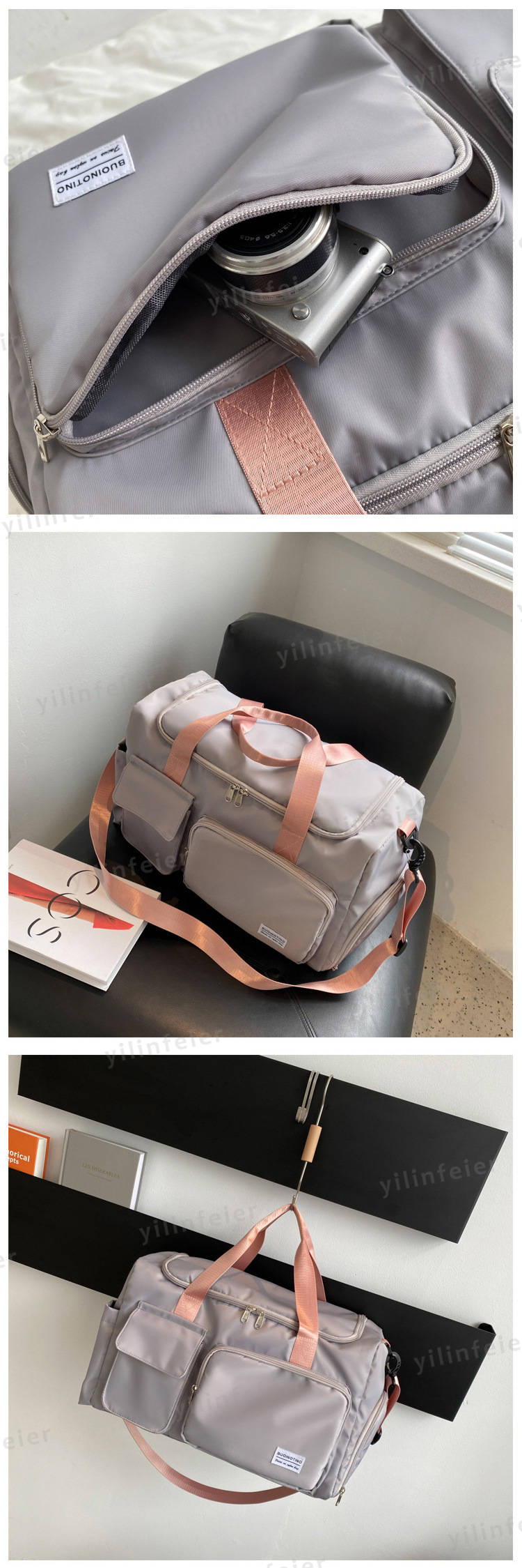 商品内容 ボストンバッグ素材(生地・毛糸) 高密度ポリエステル(オックスフォード生地)カラー グレー、ブラック、ライトグリーン、ピンク、グレー*ピンク、グリーン*ピンク、パープル、ブルーサイズ サイズ(cm):フリーサイズ