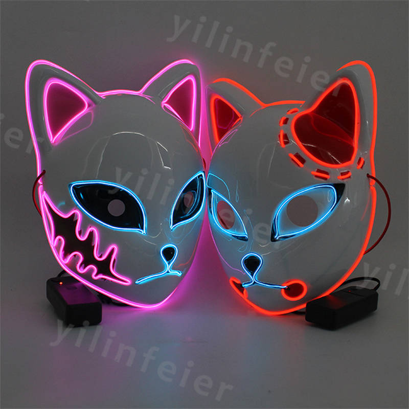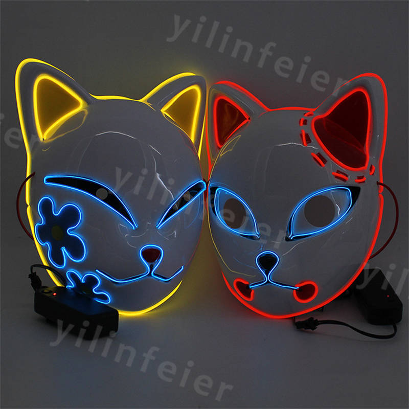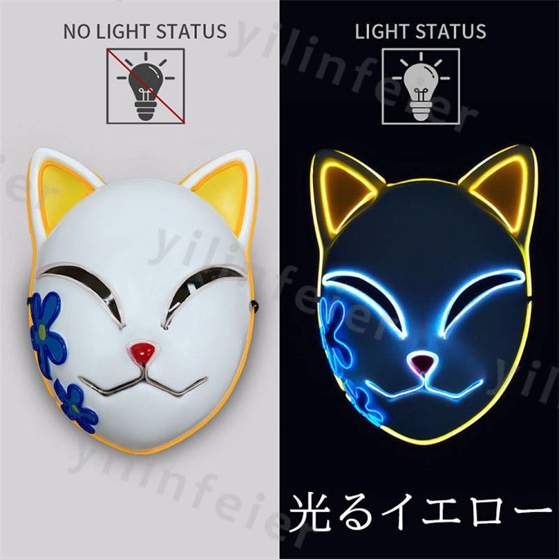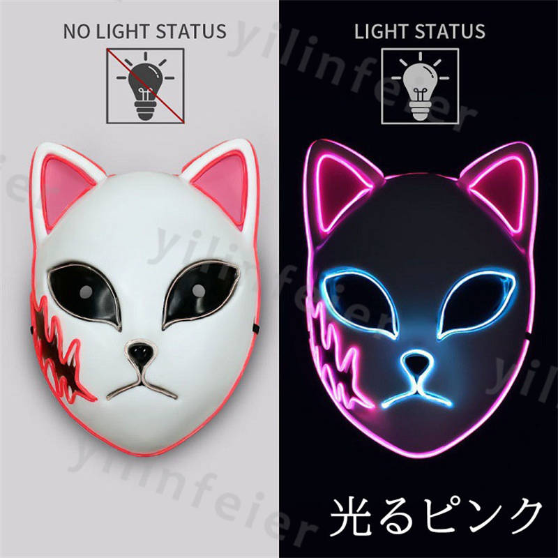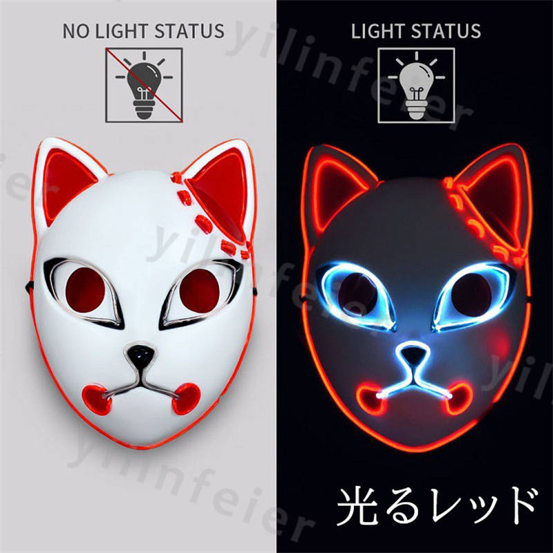 光る仮面 狐 半顔 led 光る お面