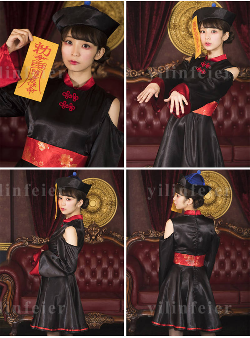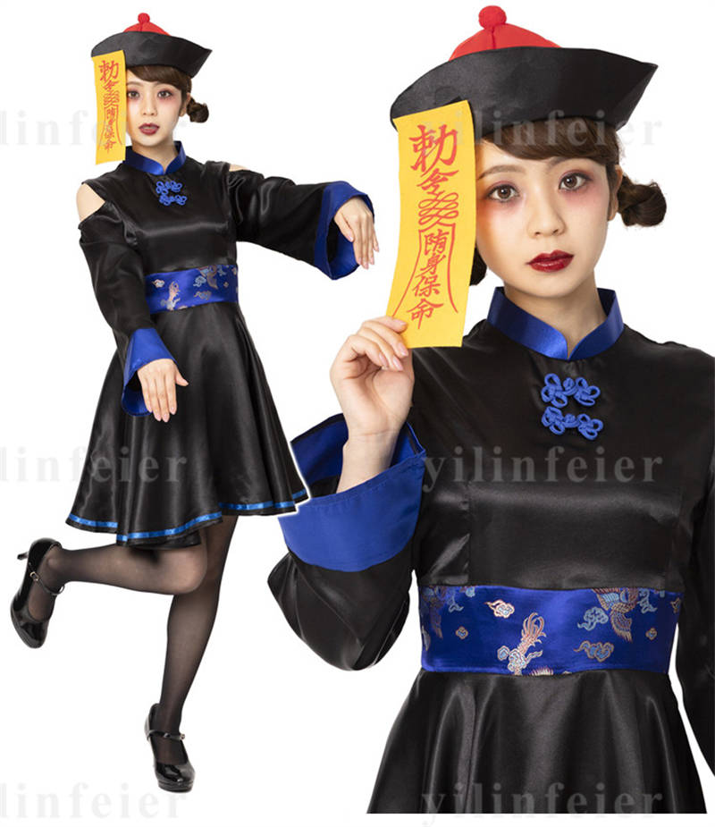 中国 お化け 定番 妖怪 お化け ゾンビ コスプレ ハロウィン 衣装 仮装 キョンシー コスチューム 雰囲気抜群のキョンシーコスチューム 黒基調でかっこいい