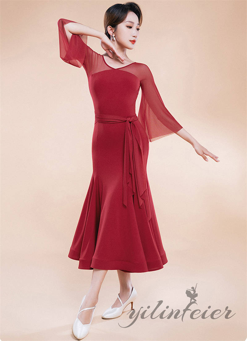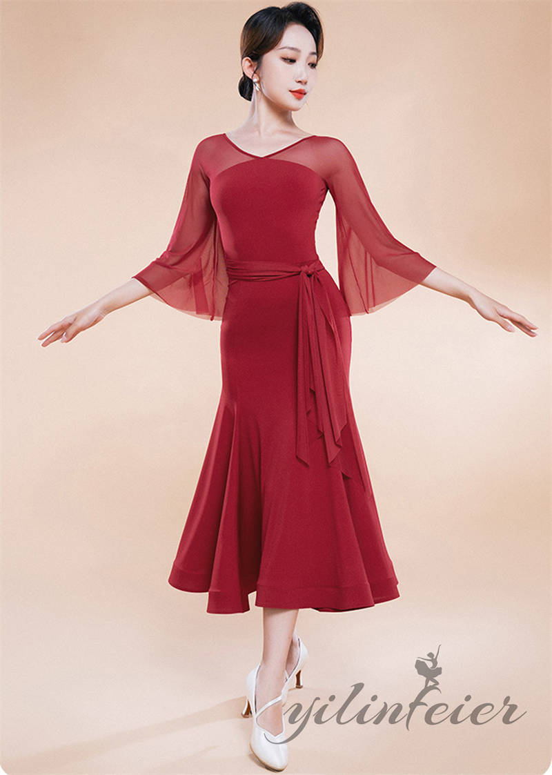 社交ダンス レディース ダンスドレス 衣装 ワルツ ワンピース イベント 大きい裾 モダン ドレス 社交ダンス衣装 広がる裾 スタンダード レッスン着 演出用 高級感 踊りドレス 大人気