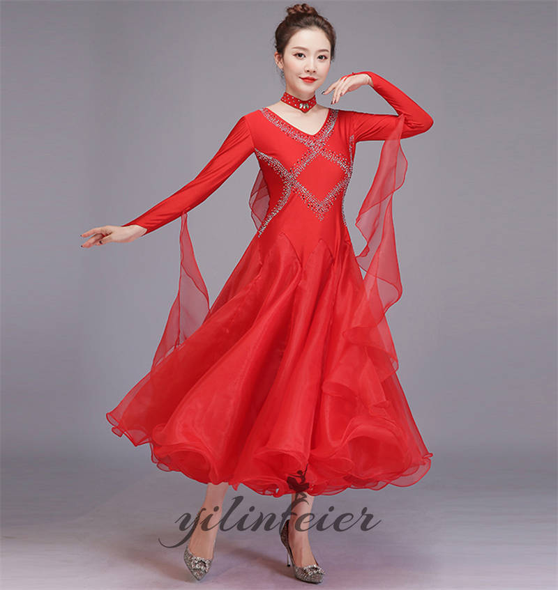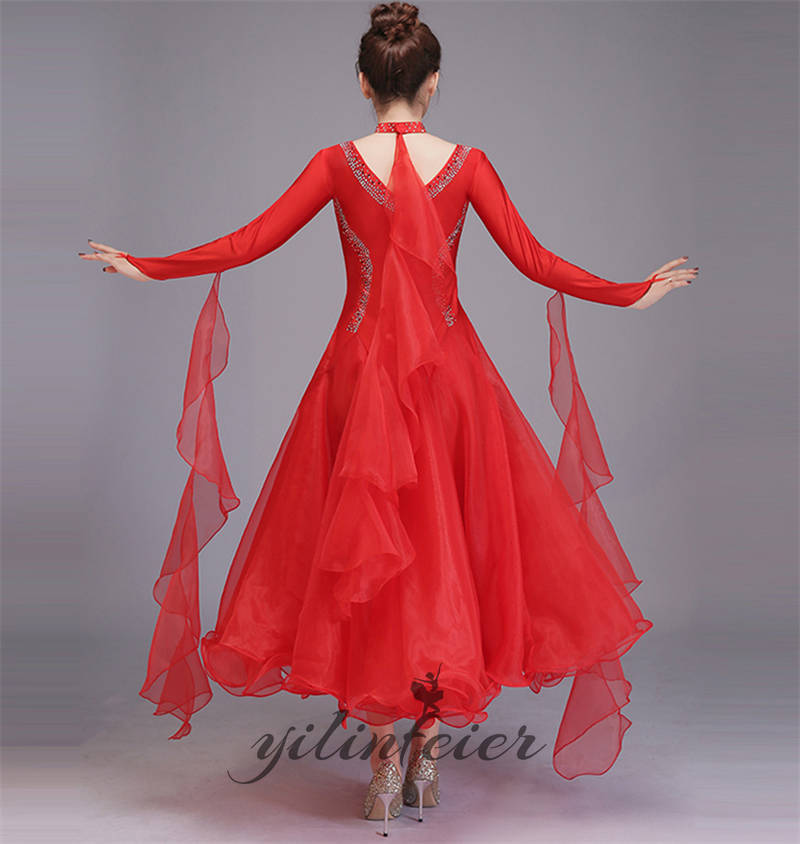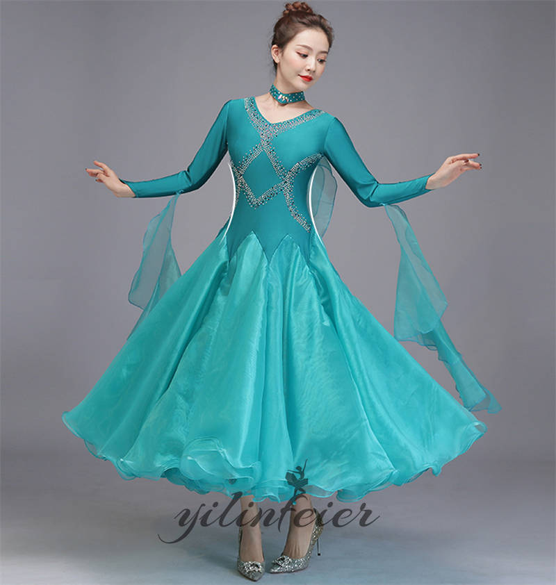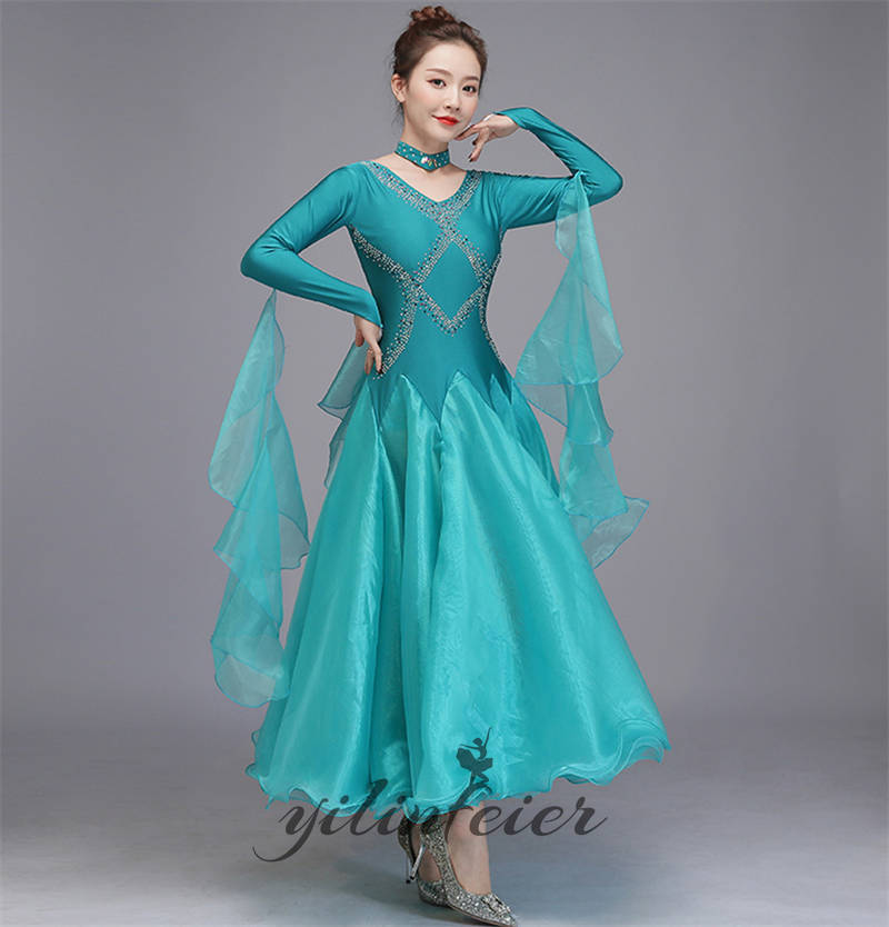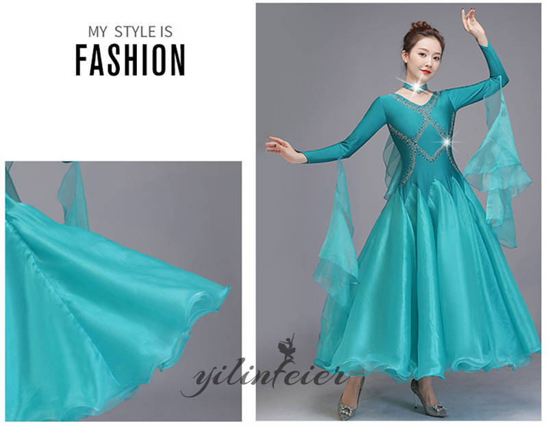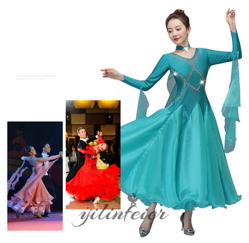 社交ダンス レディース ダンスドレス 衣装 ワルツ ワンピース イベント 大きい裾 モダン ドレス 社交ダンス衣装 広がる裾 スタンダード レッスン着 演出用 高級感 踊りドレス 大人気
