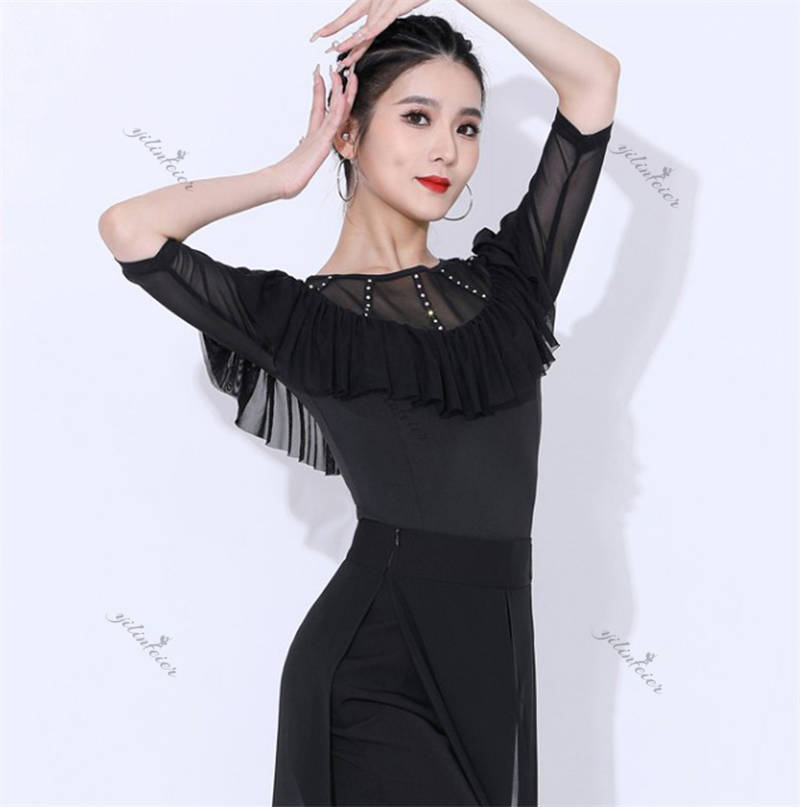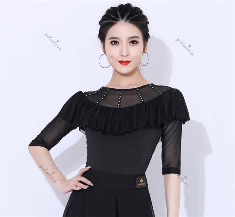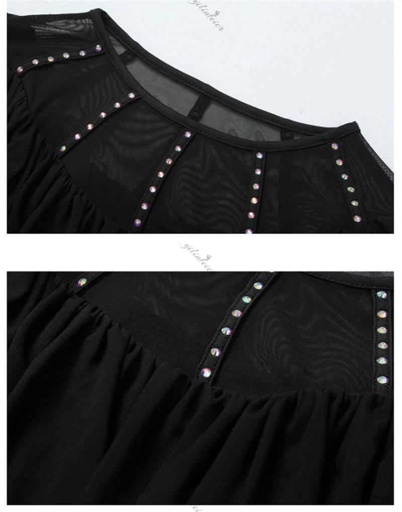 レディース レオタード ダンスウェア ラテンダンス 社交ダンス モダンダンス レッスン着 体操服 練習着 舞台衣装 団体服 文化祭 発表会 ダンス用品 ステージ衣装 女性 ダンス 衣装 透け感