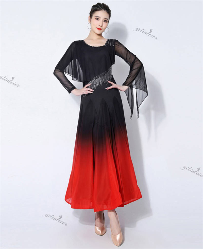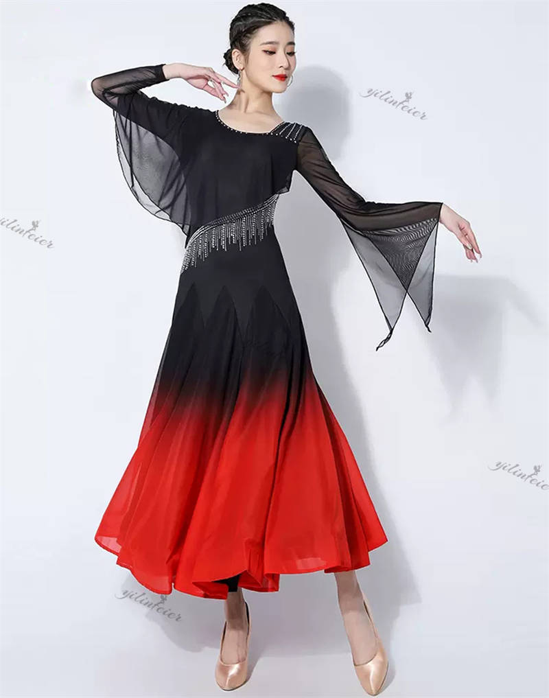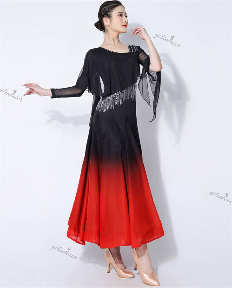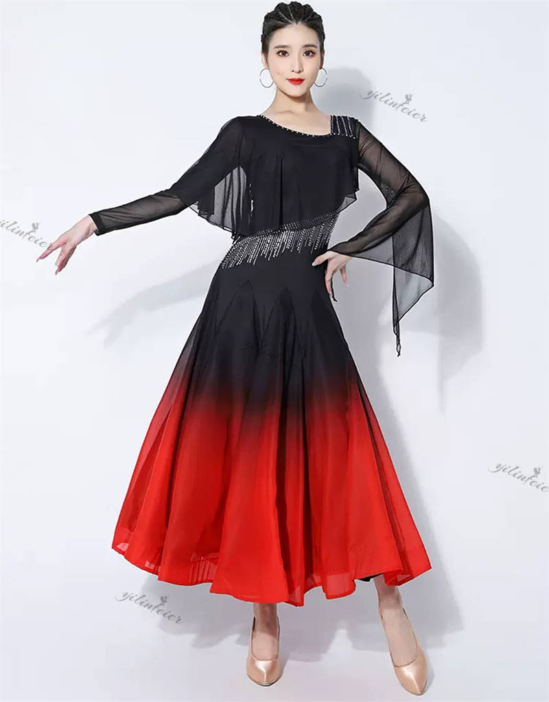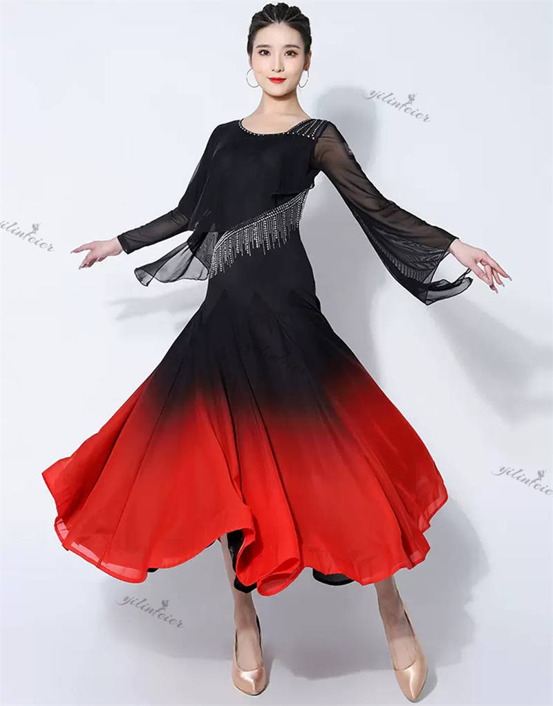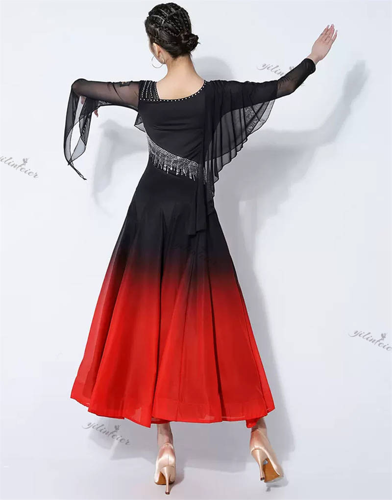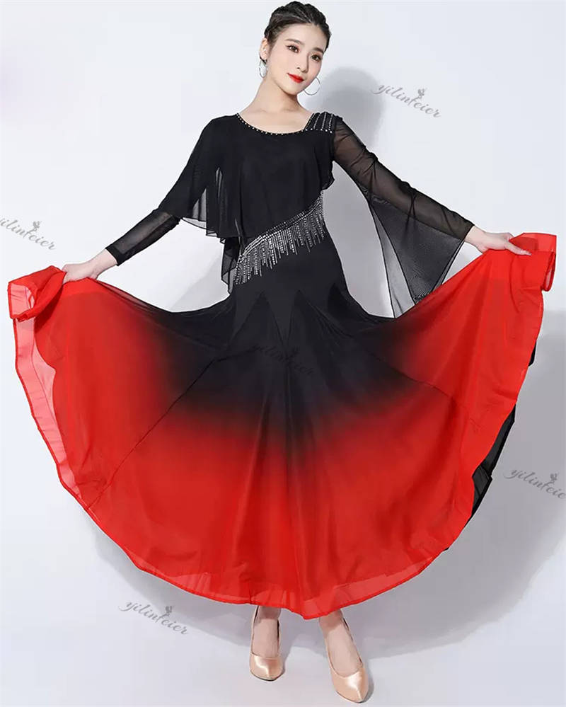 社交ダンス レディース ダンスドレス 衣装 ワルツ ワンピース イベント 大きい裾 モダン ドレス 社交ダンス衣装 広がる裾 スタンダード レッスン着 演出用 高級感 踊りドレス 大人気