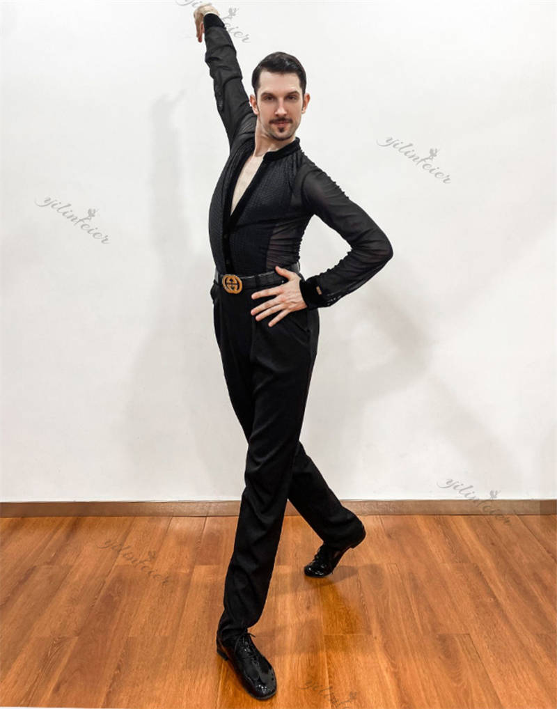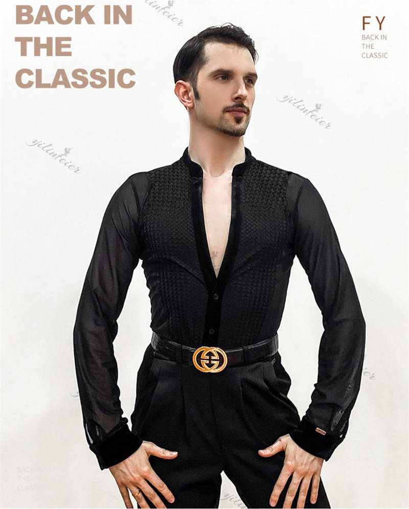 社交ダンス メンズ シャツ トップス ラテンダンス 男性用 ダンスウェア 練習着 ラテン ルンバ チャチャ 舞台衣装 ステージ衣装 演出服 ダンス発表会 パーティー 長袖シャツ 着心地良い