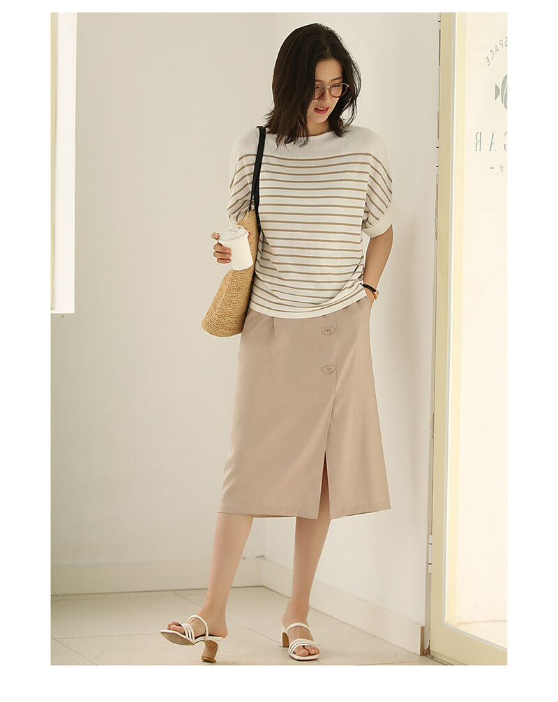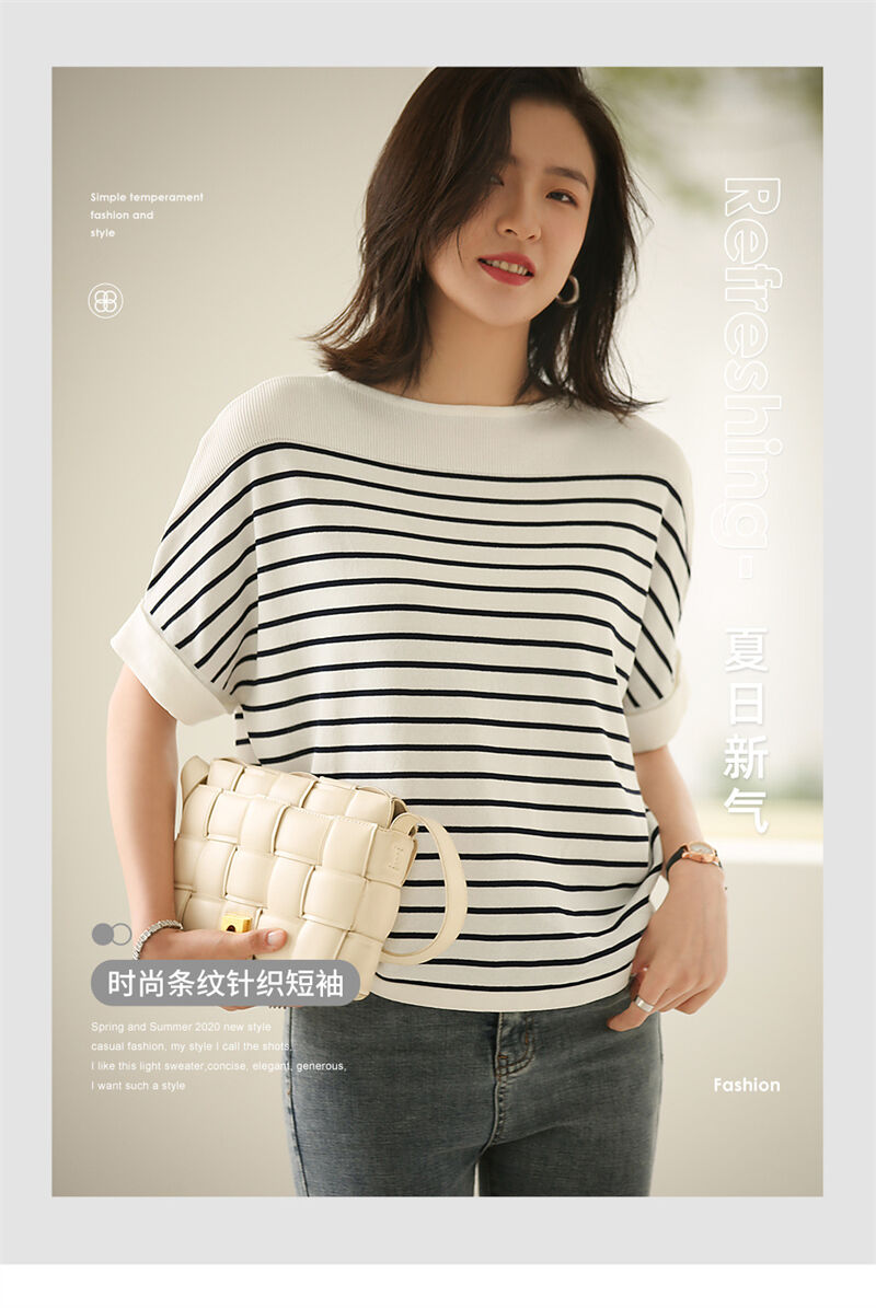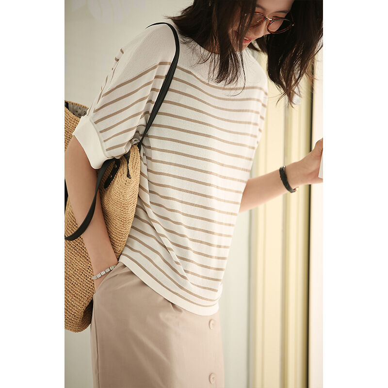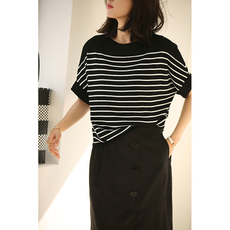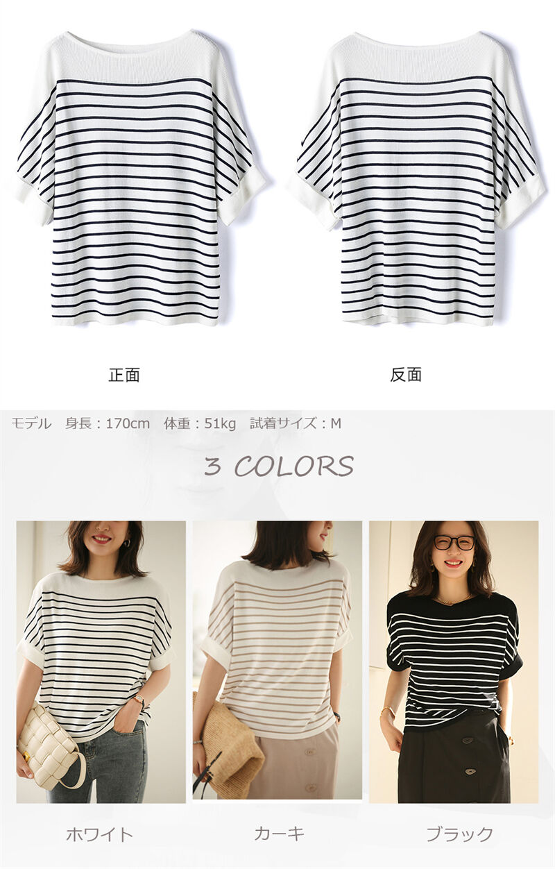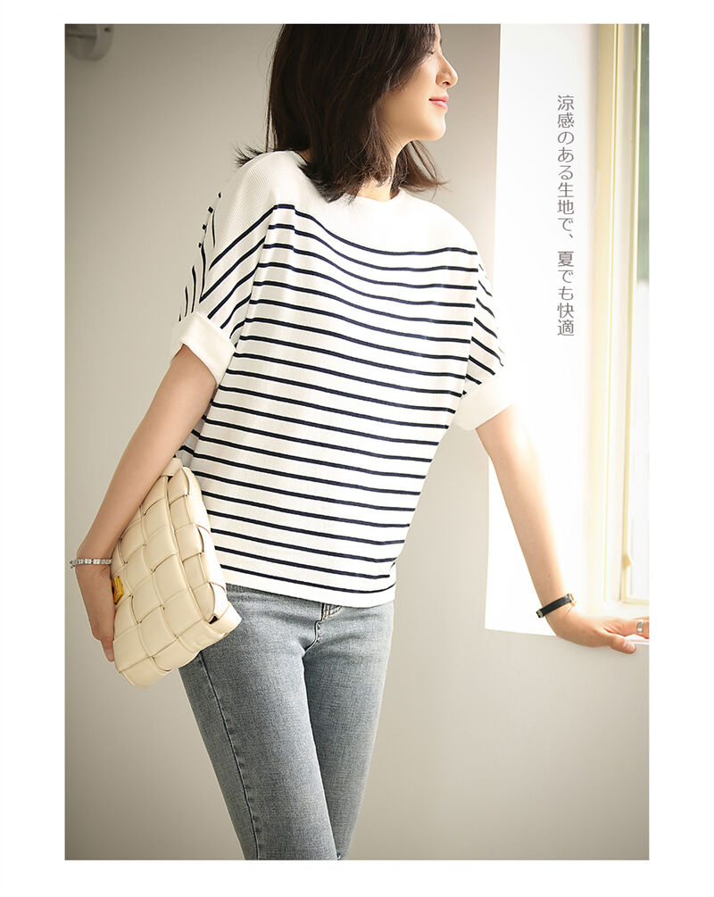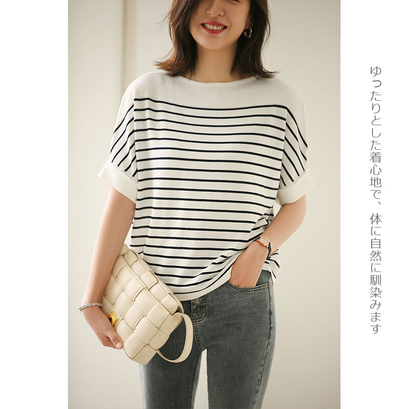 ストライプ ニットTシャツ レディース