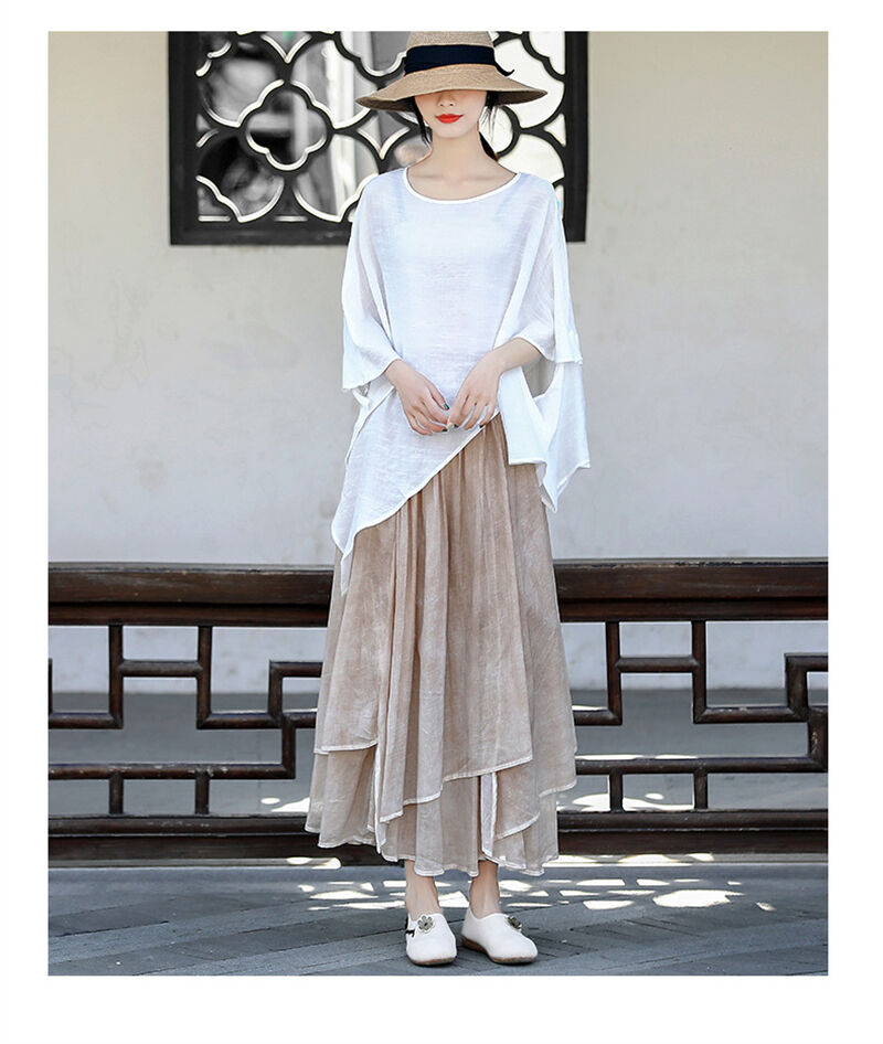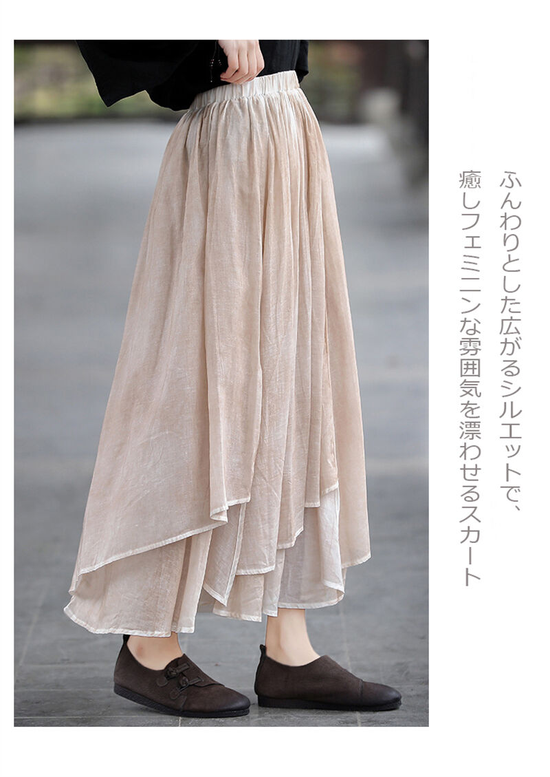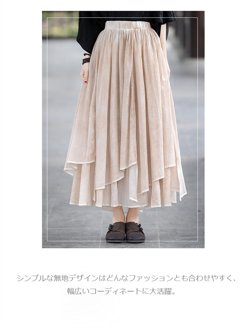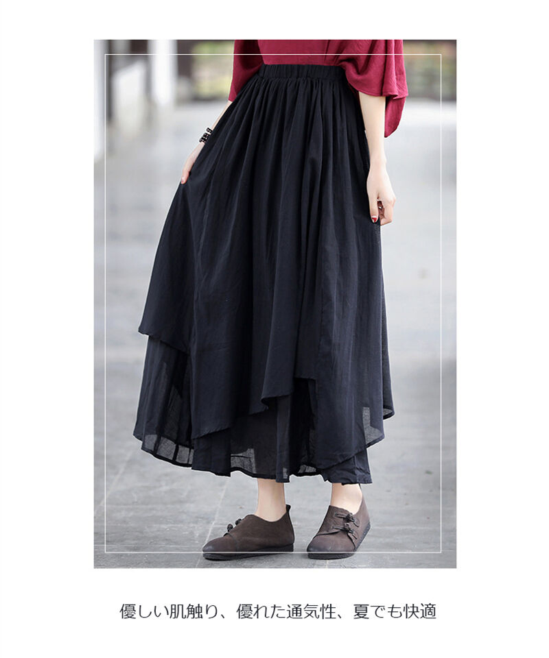 コットンリネン スカート ウエストゴム