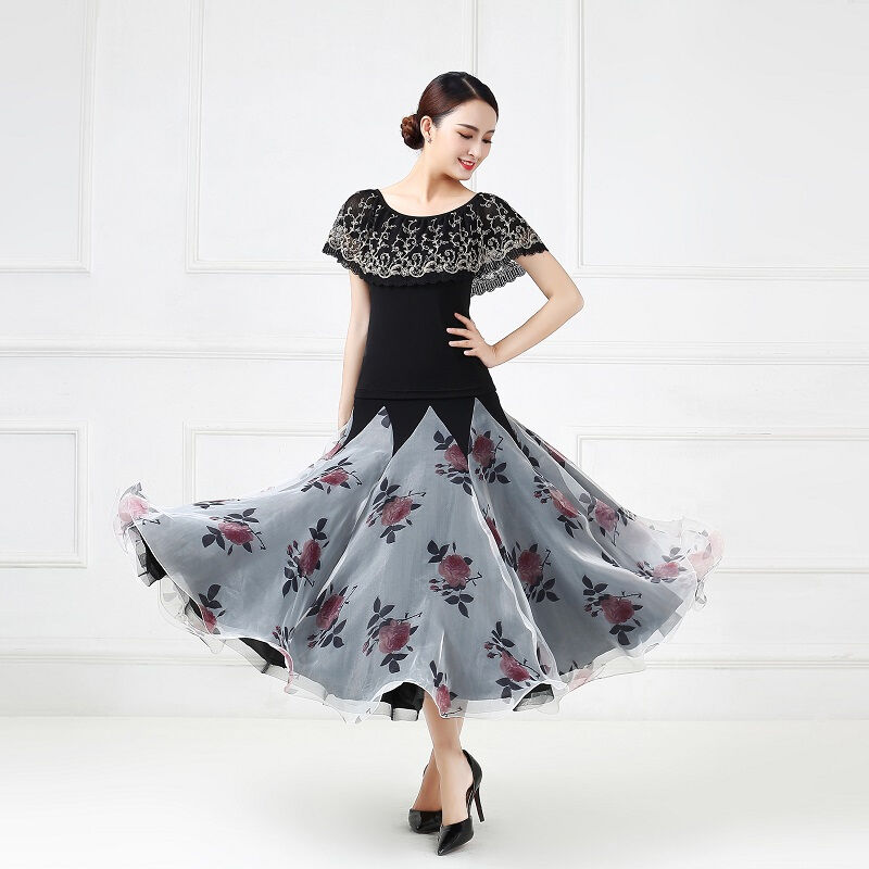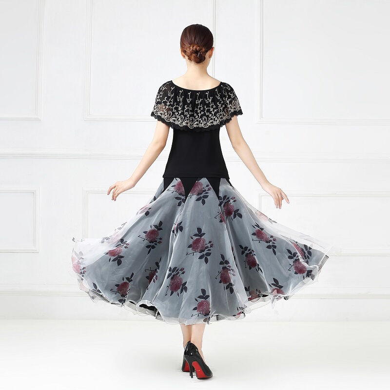 社交ダンス レディース ダンスドレス 衣装 ワルツ ワンピース イベント 大きい裾 モダン ドレス 社交ダンス衣装 広がる裾 スタンダード レッスン着 演出用 高級感 踊りドレス 大人気 豪華
