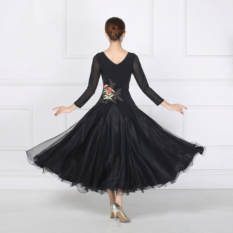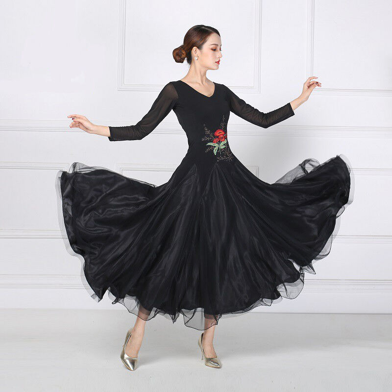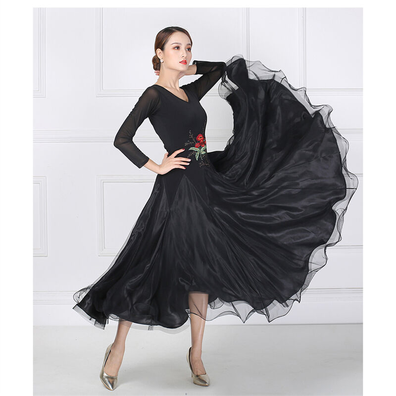 社交ダンス レディース ダンスドレス 衣装 ワルツ ワンピース イベント 大きい裾 モダン ドレス 社交ダンス衣装 広がる裾 スタンダード レッスン着 演出用 高級感 踊りドレス 大人気 豪華