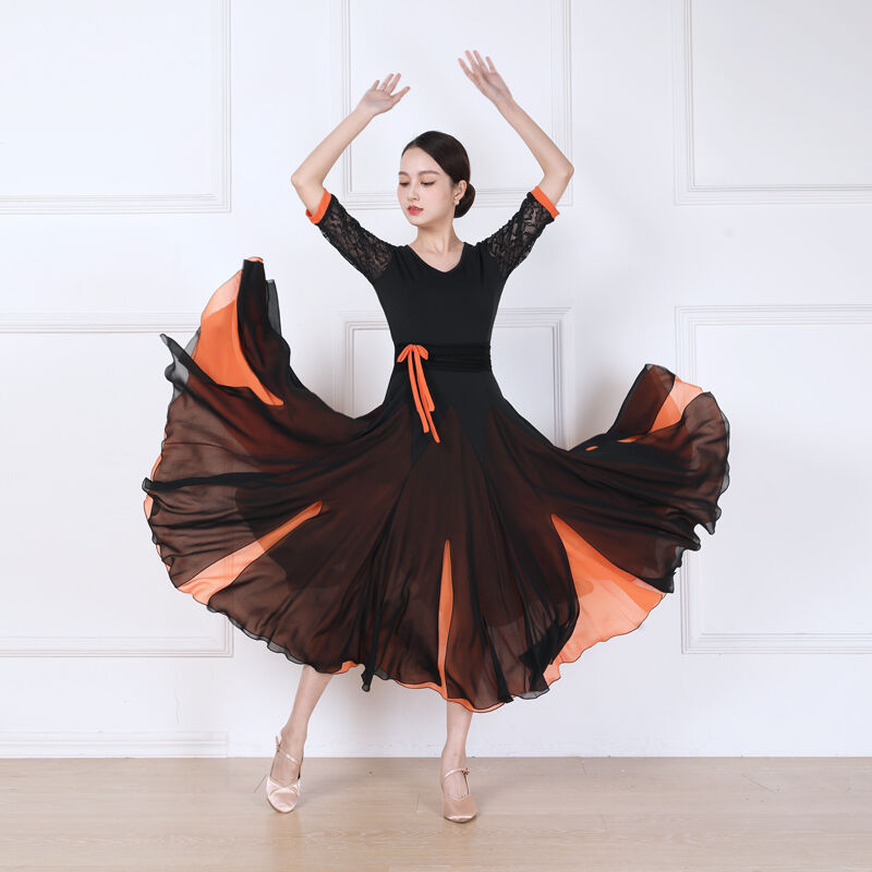 社交ダンス レディース ダンスドレス 衣装 ワルツ ワンピース イベント 大きい裾 モダン ドレス 社交ダンス衣装 広がる裾 スタンダード レッスン着 演出用 高級感 踊りドレス 大人気 豪華