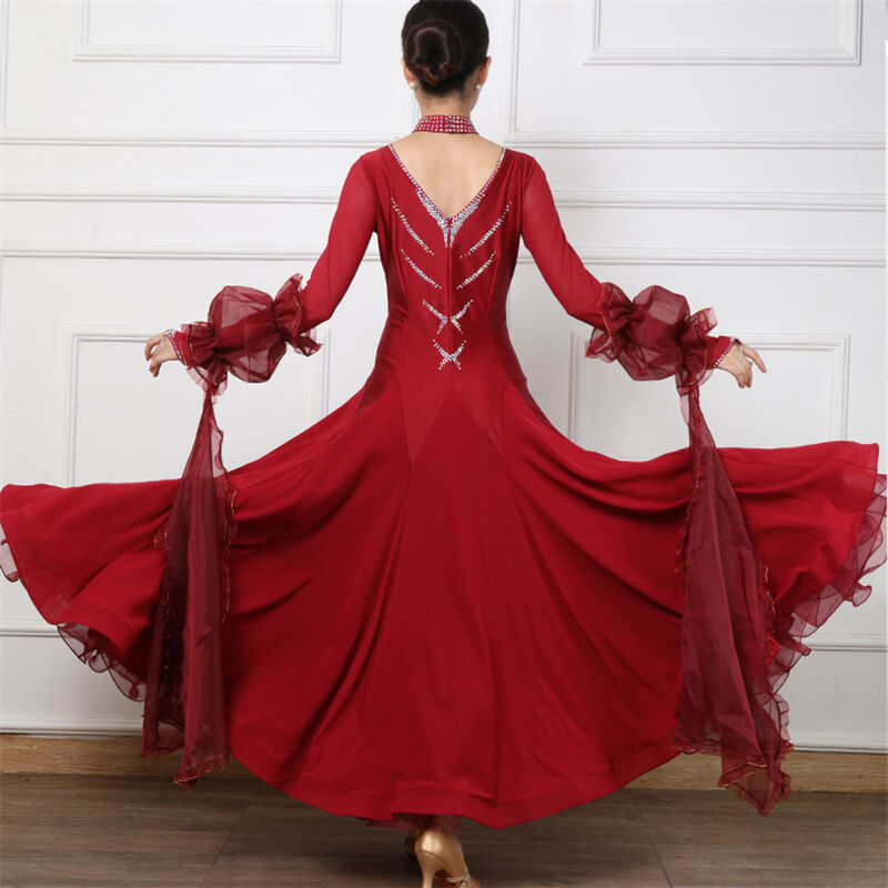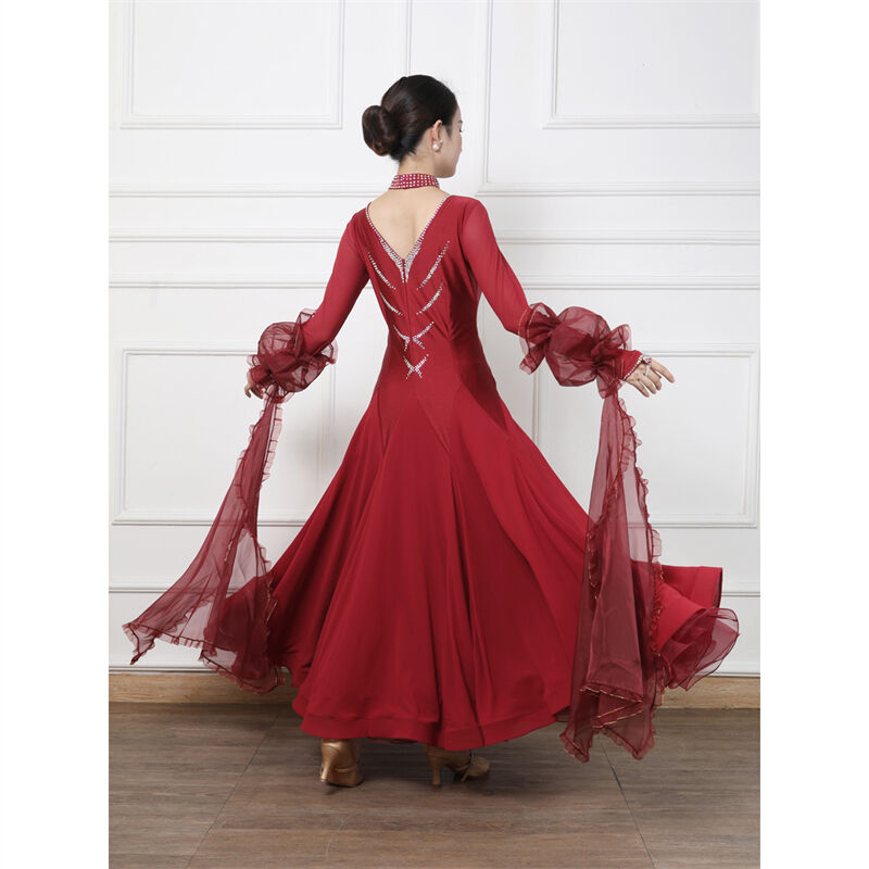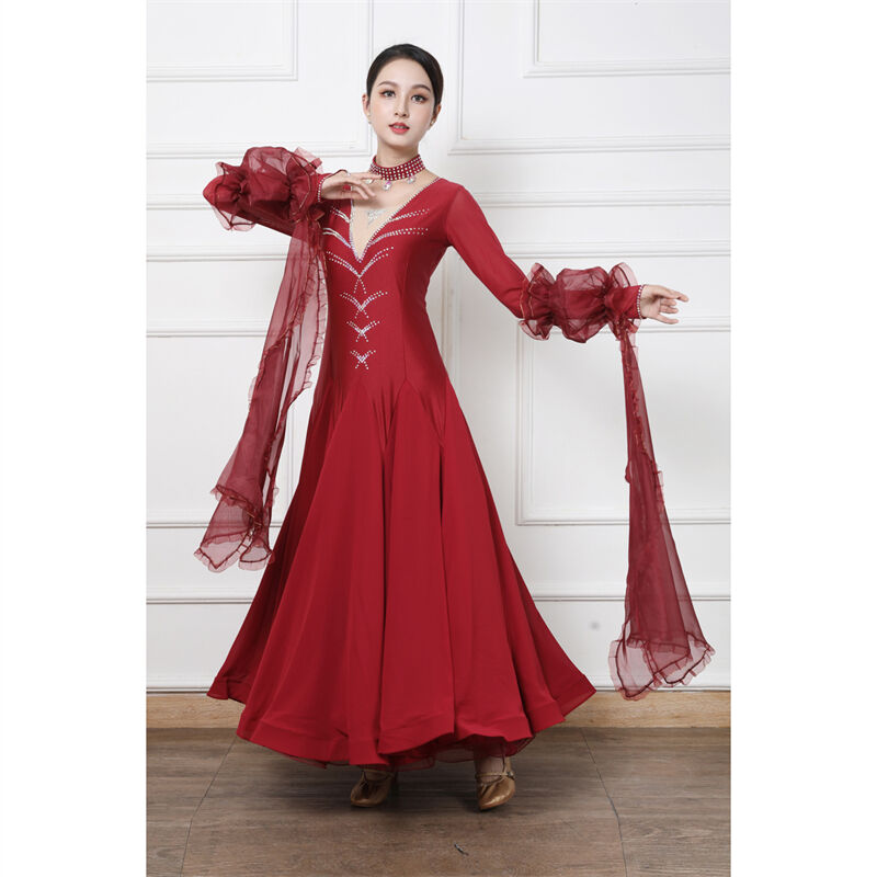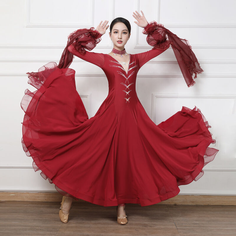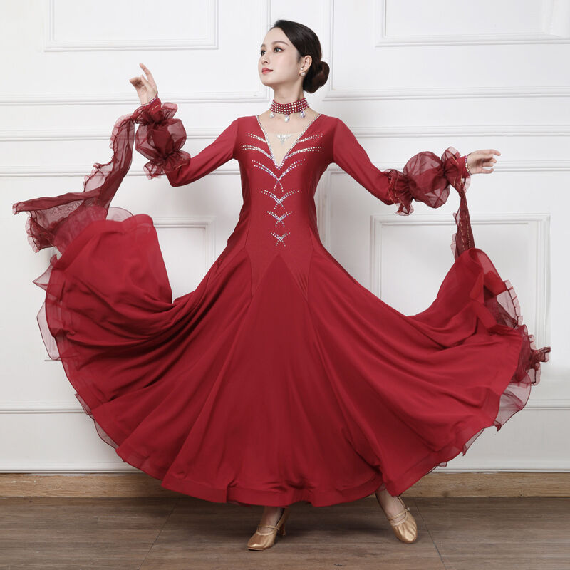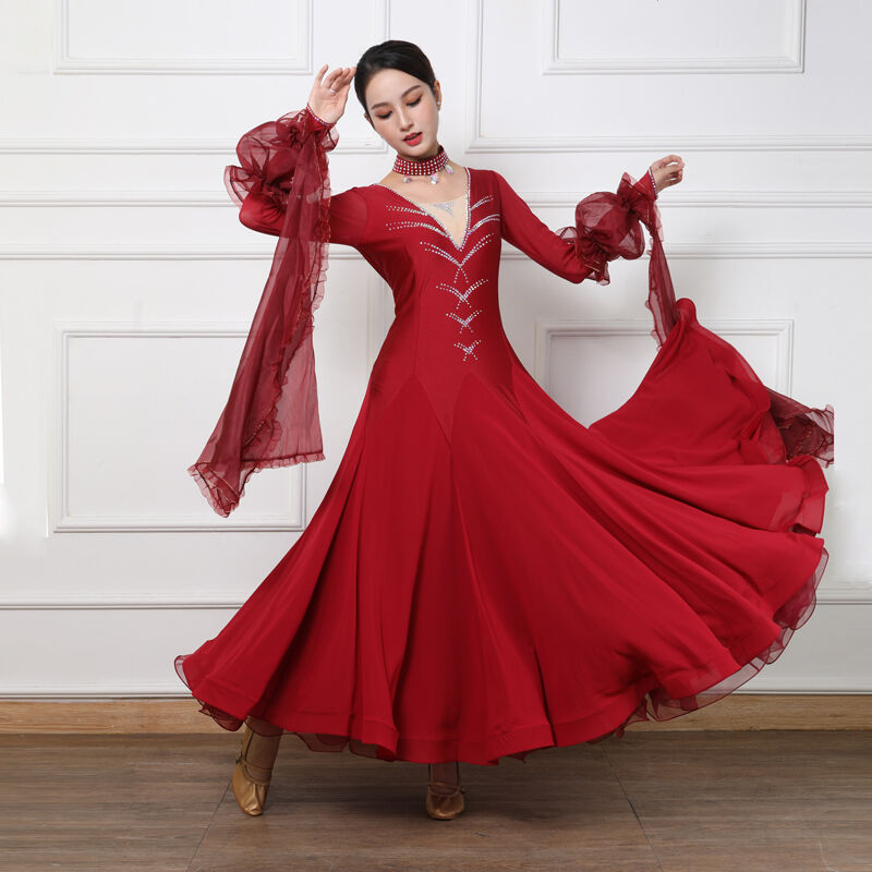社交ダンス レディース ダンスドレス 衣装 ワルツ ワンピース イベント 大きい裾 モダン ドレス 社交ダンス衣装 広がる裾 スタンダード レッスン着 演出用 高級感 踊りドレス 大人気 豪華