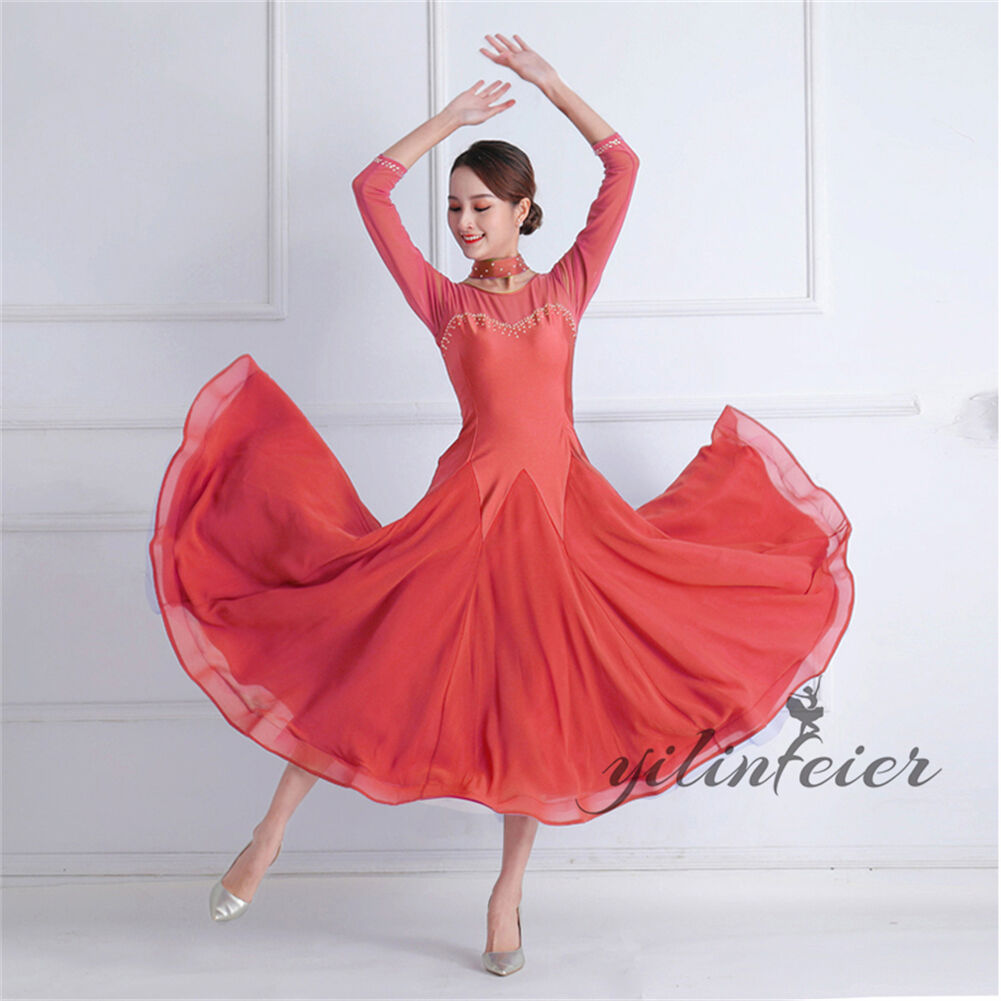 表記寸法と実寸値の多少の誤差はご了承ください。オーダーメイド この商品は無料でオーダーメイドが可能でございます。発注後、メールにて希望サイズをお知らせください。(身長 体重 バスト ウエスト ヒップ 希望の着丈)特微 着た時・歩いた時のシルエットがとても美しい。軽くてフレアもたっぷり入っているので綺麗に揺れます。ストレッチ素材で動きやすく、練習等におすすめのレディース社交ダンスウェアです特微 デザインが上品で、工芸が細かくて、本当の上品です。