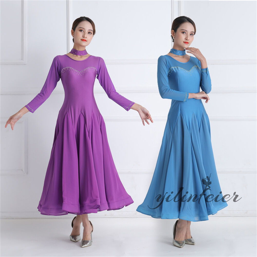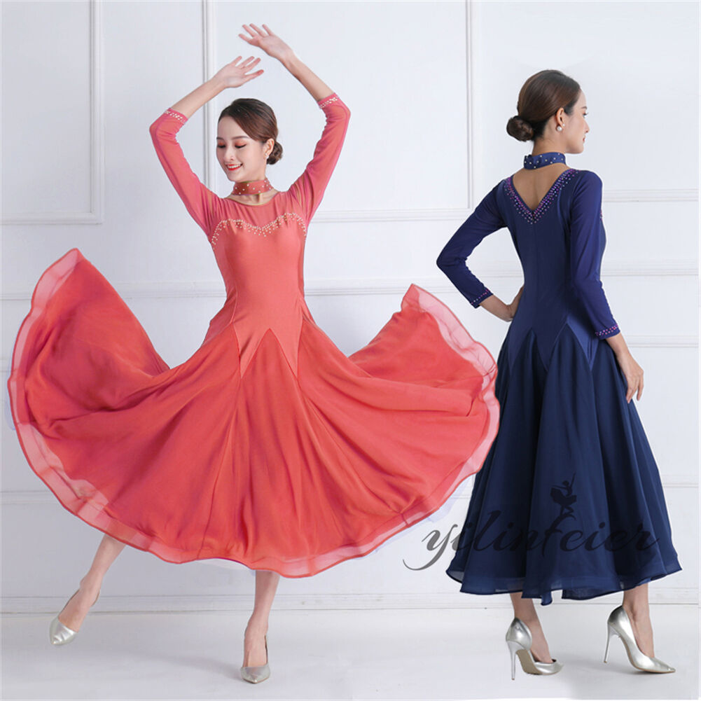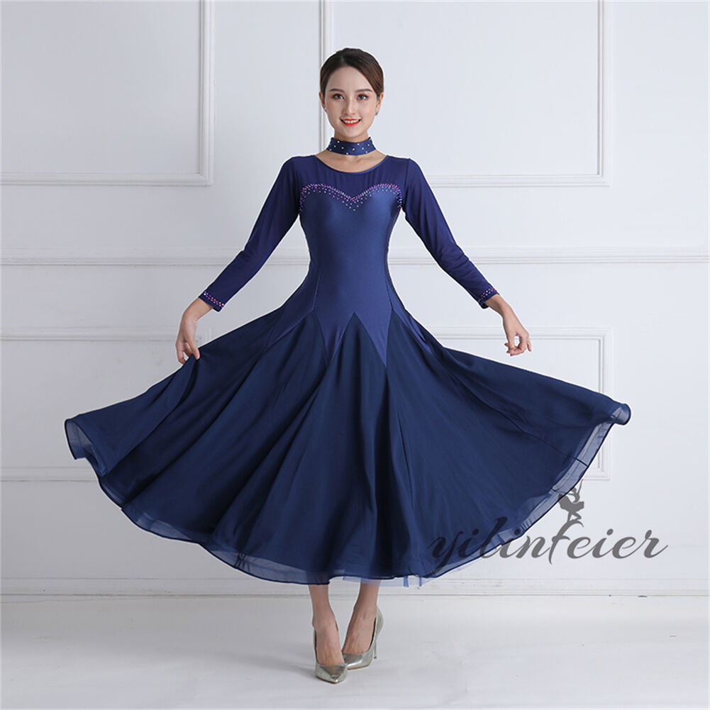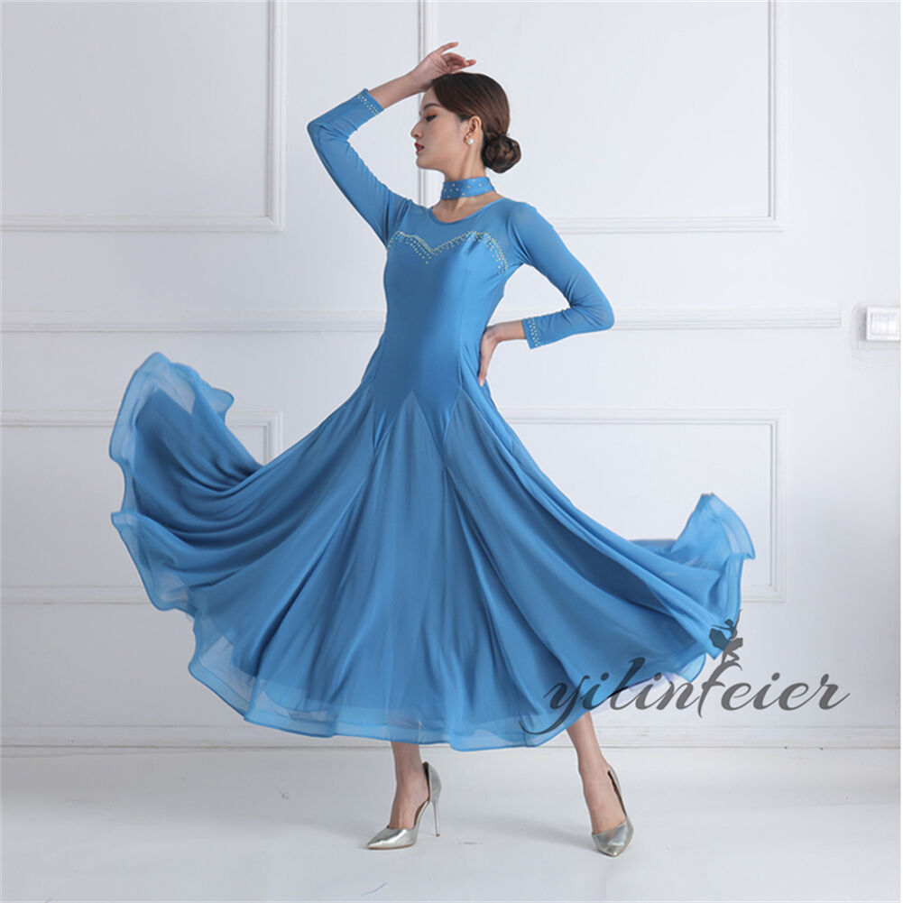 社交ダンス レディース ダンスドレス 衣装 ワルツ ワンピース イベント 大きい裾 モダン ドレス 社交ダンス衣装 広がる裾 スタンダード レッスン着 演出用 高級感 踊りドレス 大人気