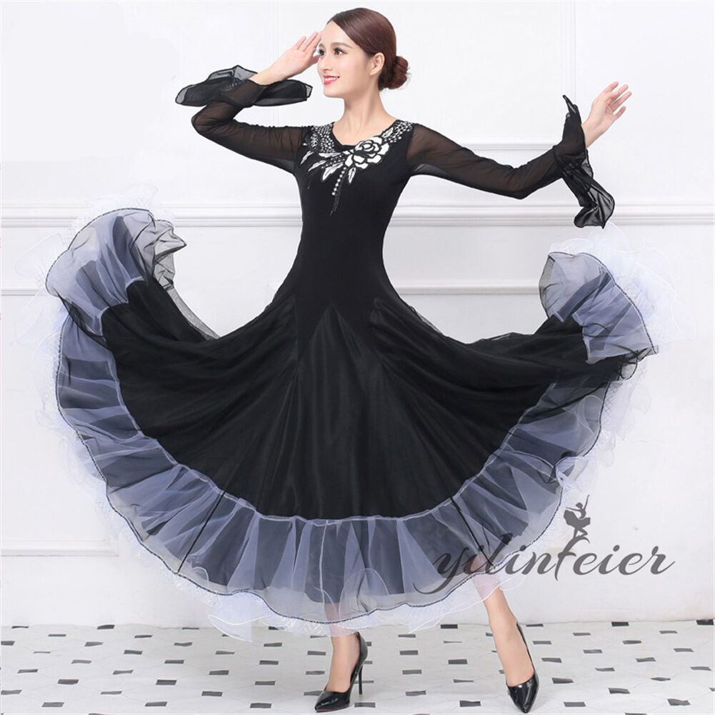 社交ダンス レディース ダンスドレス 衣装 ワルツ ワンピース イベント 大きい裾 モダン ドレス 社交ダンス衣装 広がる裾 スタンダード レッスン着 演出用 高級感 踊りドレス 大人気