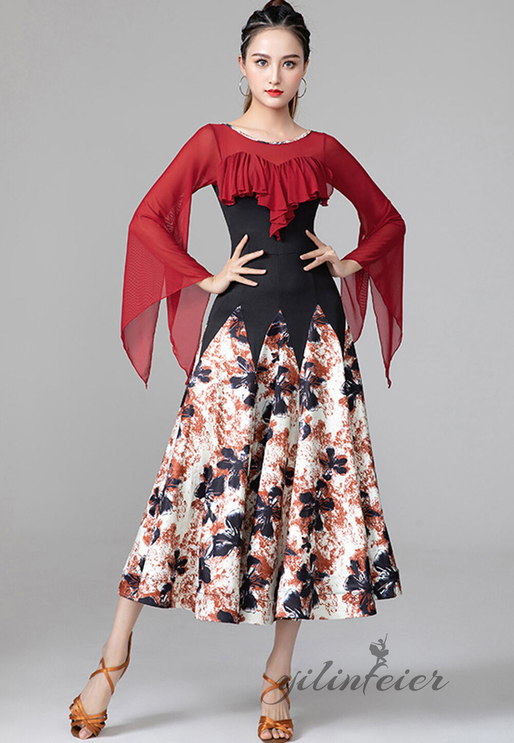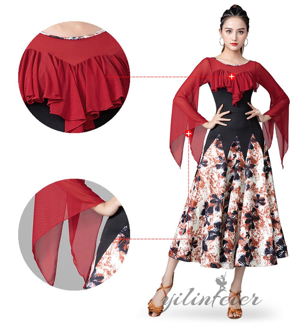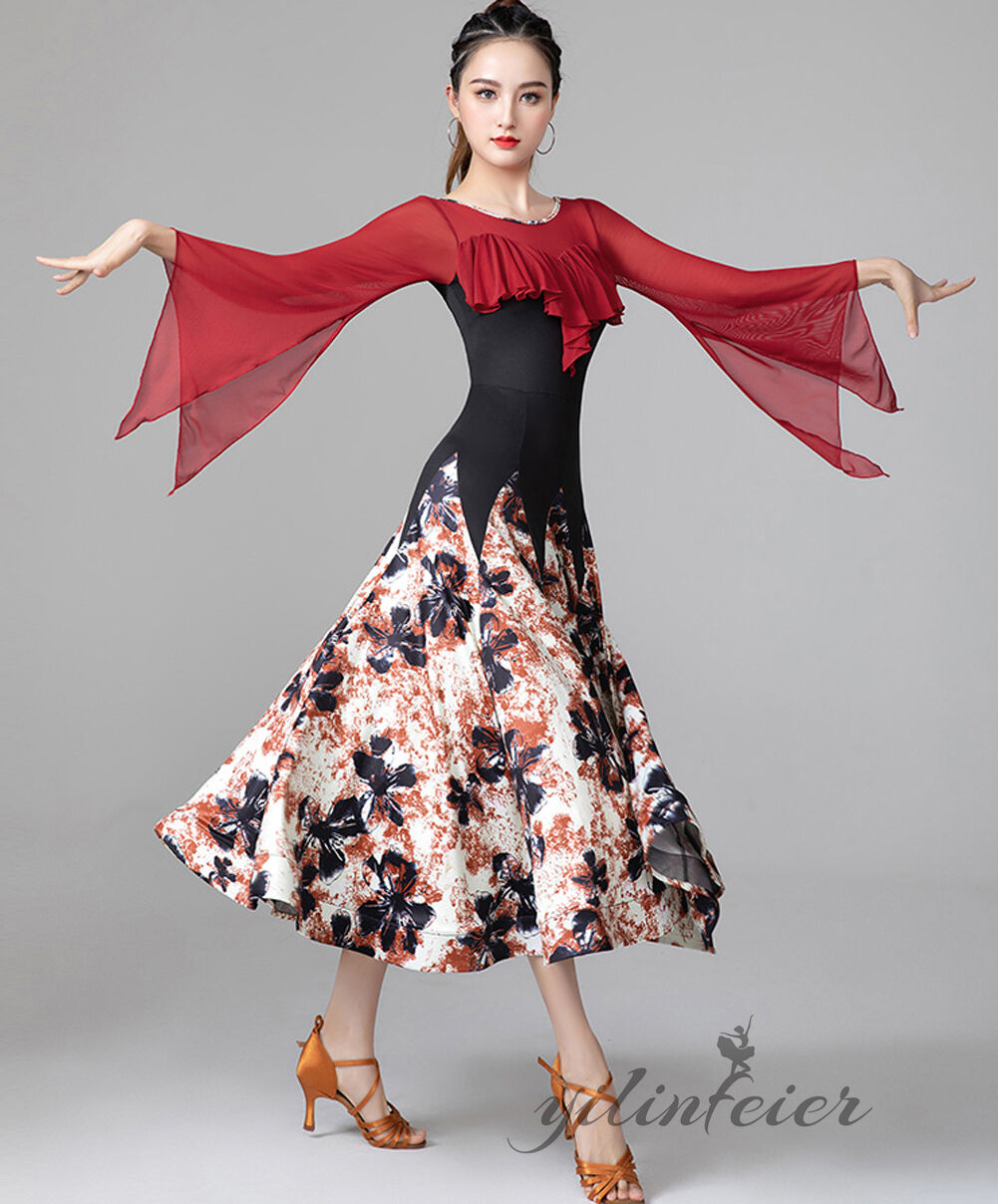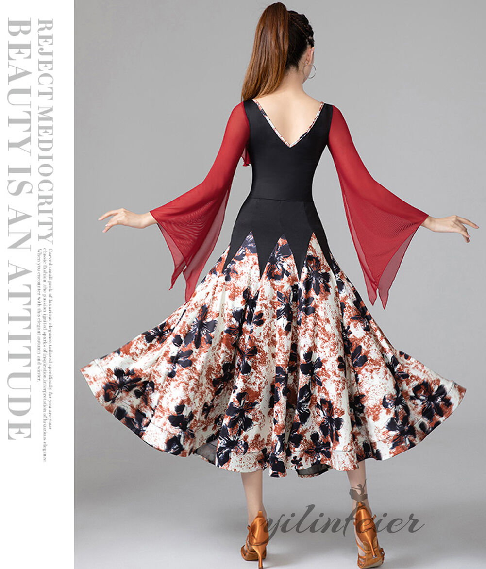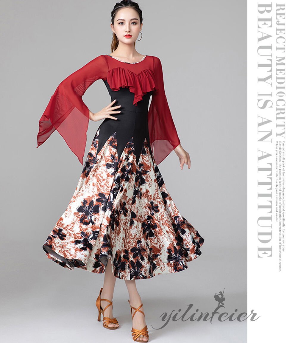 スタンダードドレス 社交ダンス レディース ダンスドレス レディース 競技ダンス 発表会 コンテスト コンクール エレガント 大合唱衣装 フラワー衣装 モダンダンス 衣装 開場ドレス