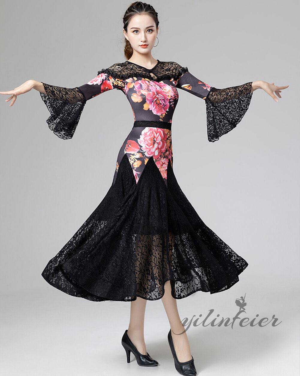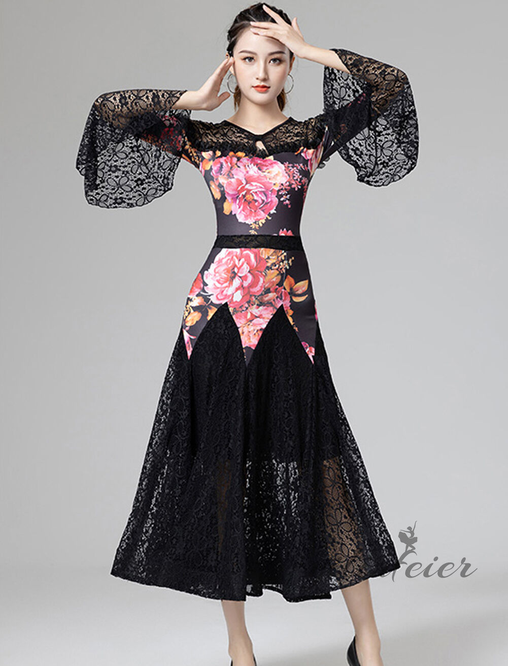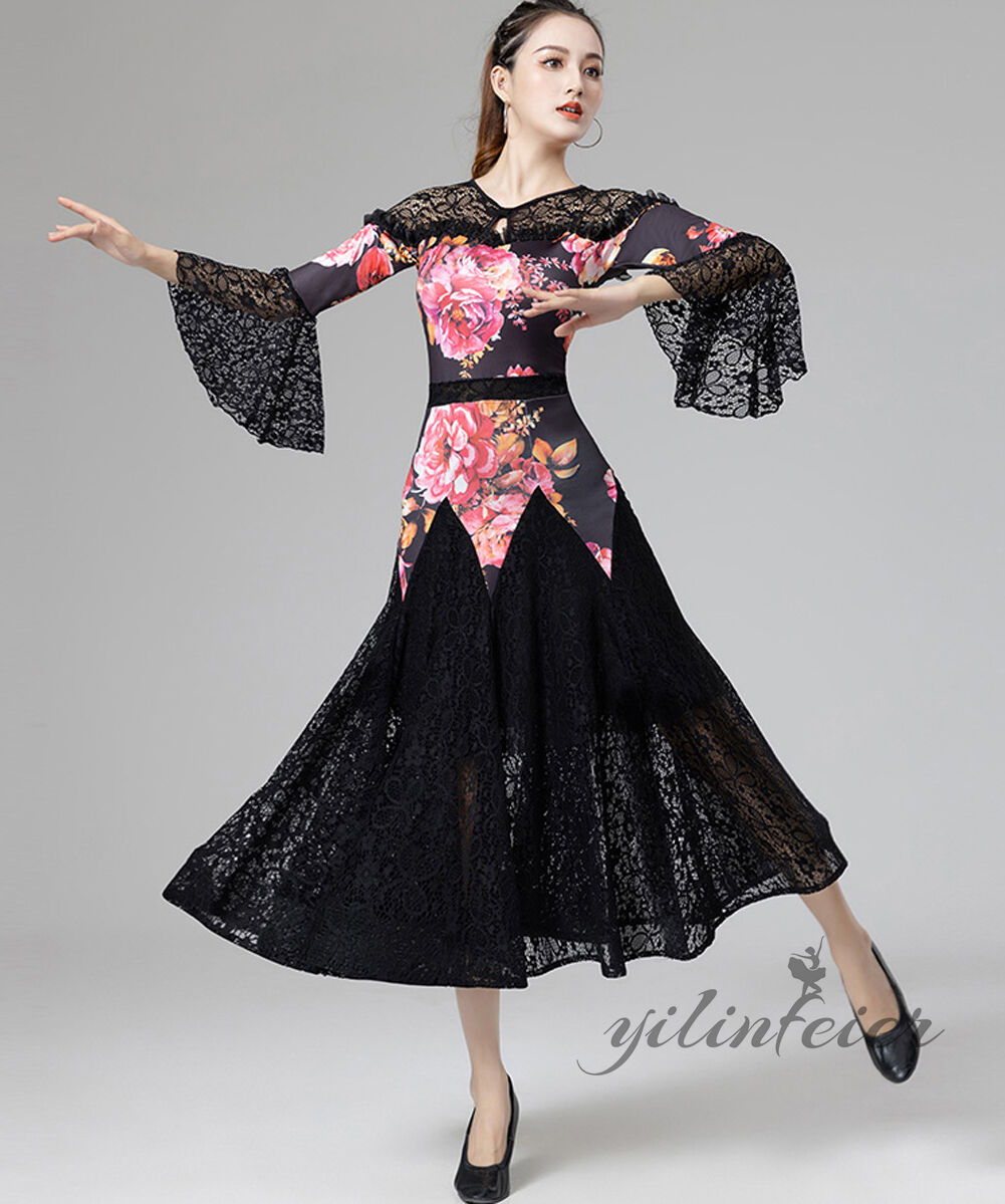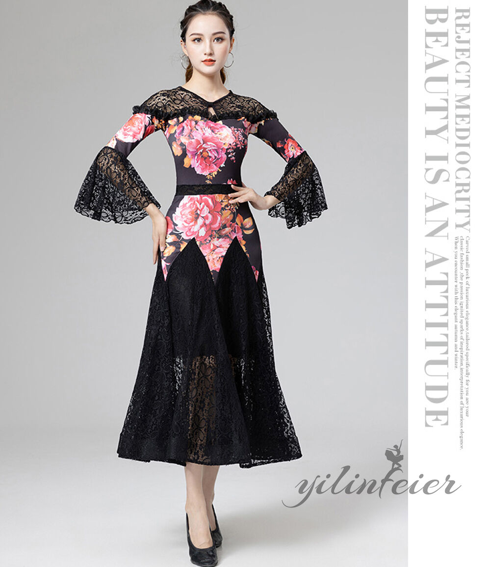 スタンダードドレス 社交ダンス レディース ダンスドレス レディース 競技ダンス 発表会 コンテスト コンクール エレガント 大合唱衣装 フラワー衣装 モダンダンス 衣装 開場ドレス