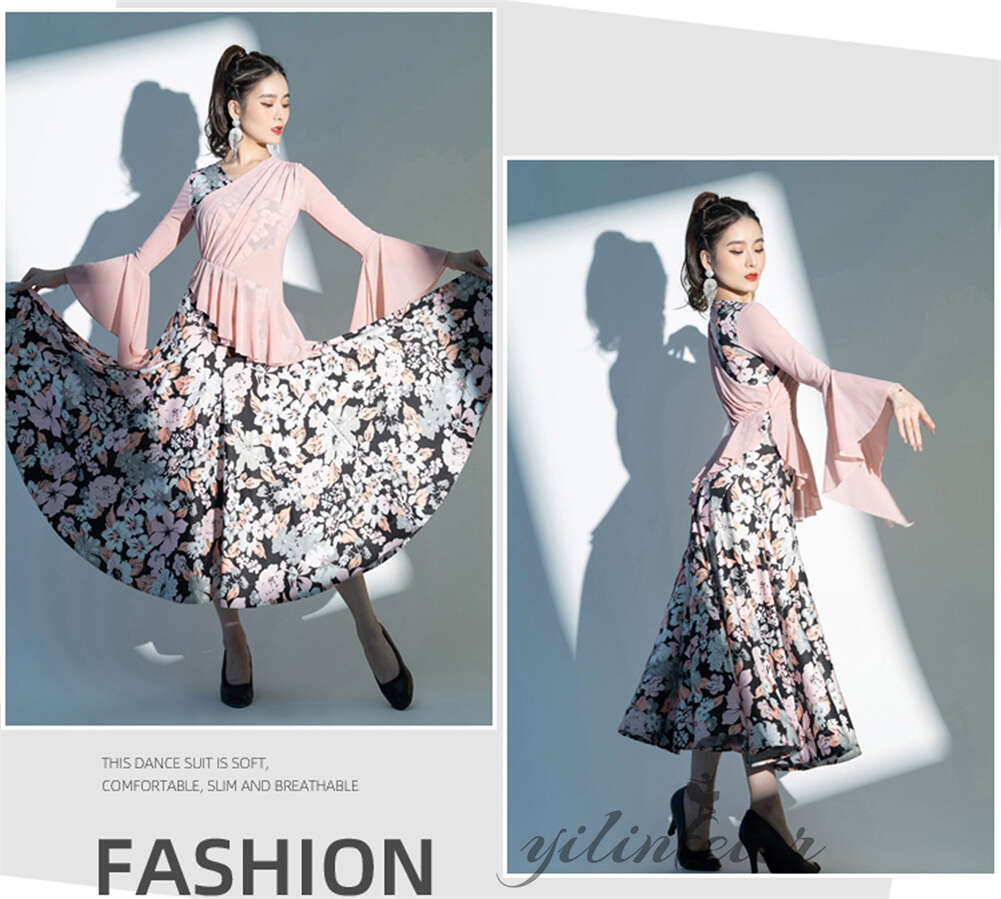 スタンダードドレス 社交ダンス レディース ダンスドレス レディース 競技ダンス 発表会 コンテスト コンクール エレガント 大合唱衣装 フラワー衣装 モダンダンス 衣装 開場ドレス