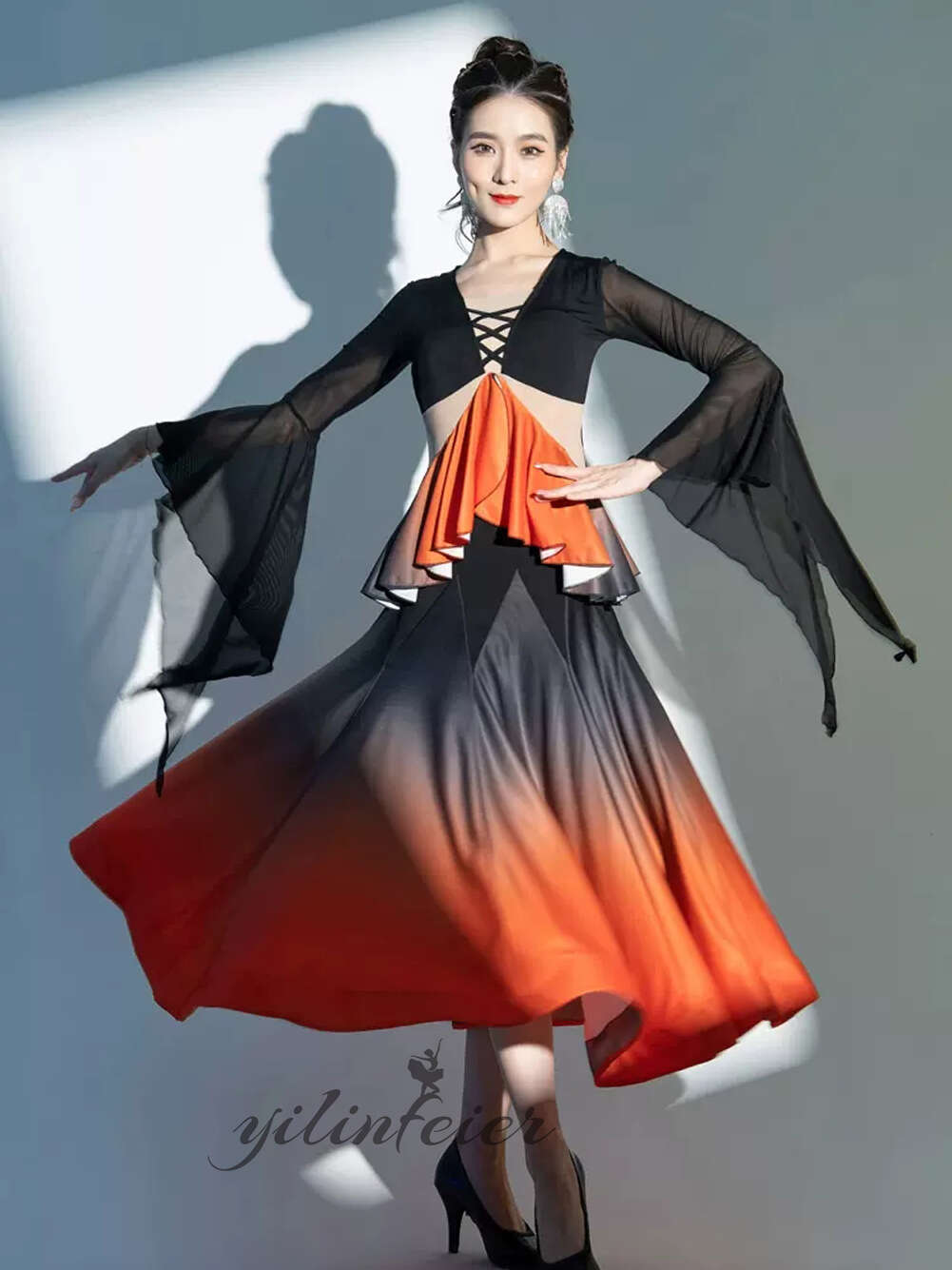 ・タンゴドレス モダンダンスドレス モダンダンス衣装 モダンドレス ボールルーム衣装 ワルツ ドレス レッスン着