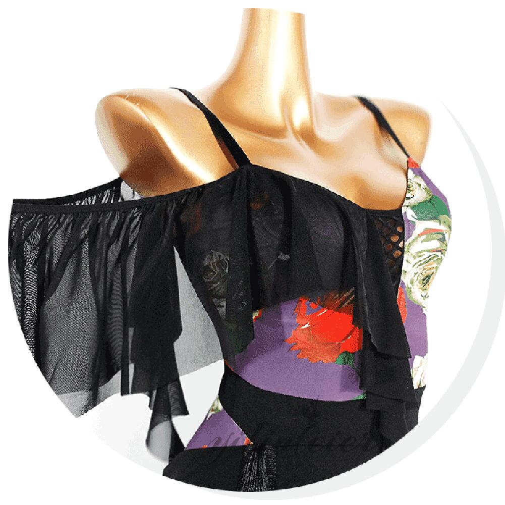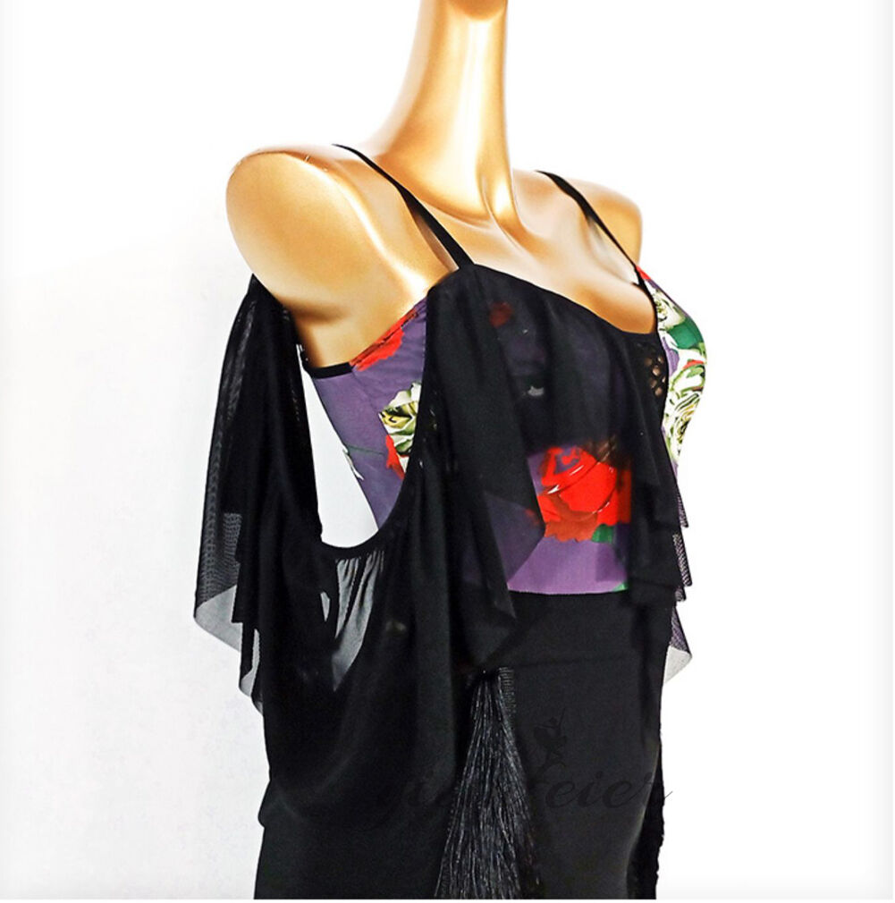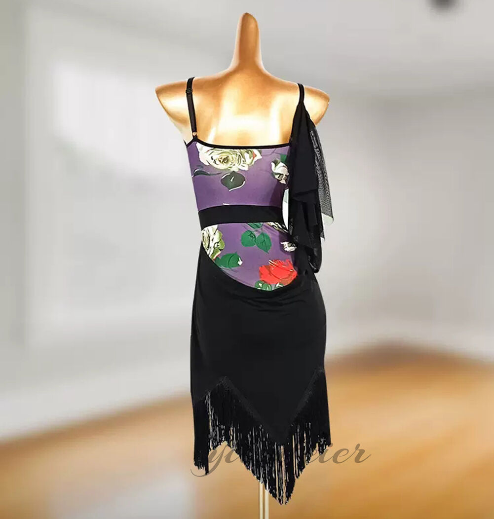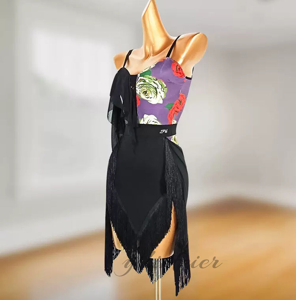 ラテンダンス発表会用ドレス ワルツ ラテン系 ダンスドレス ワルツ用 社交ダンスドレス 発表会用 競技ダンス 豪華 大合唱 フラワー ラテン 開場ドレス ワンピース衣装 ラテンワンピース