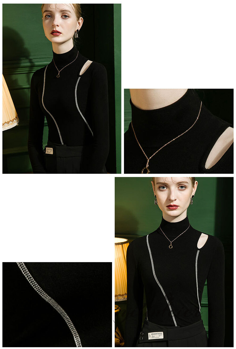 スタンドカラーで露出しすぎず、品の良い透け感です。