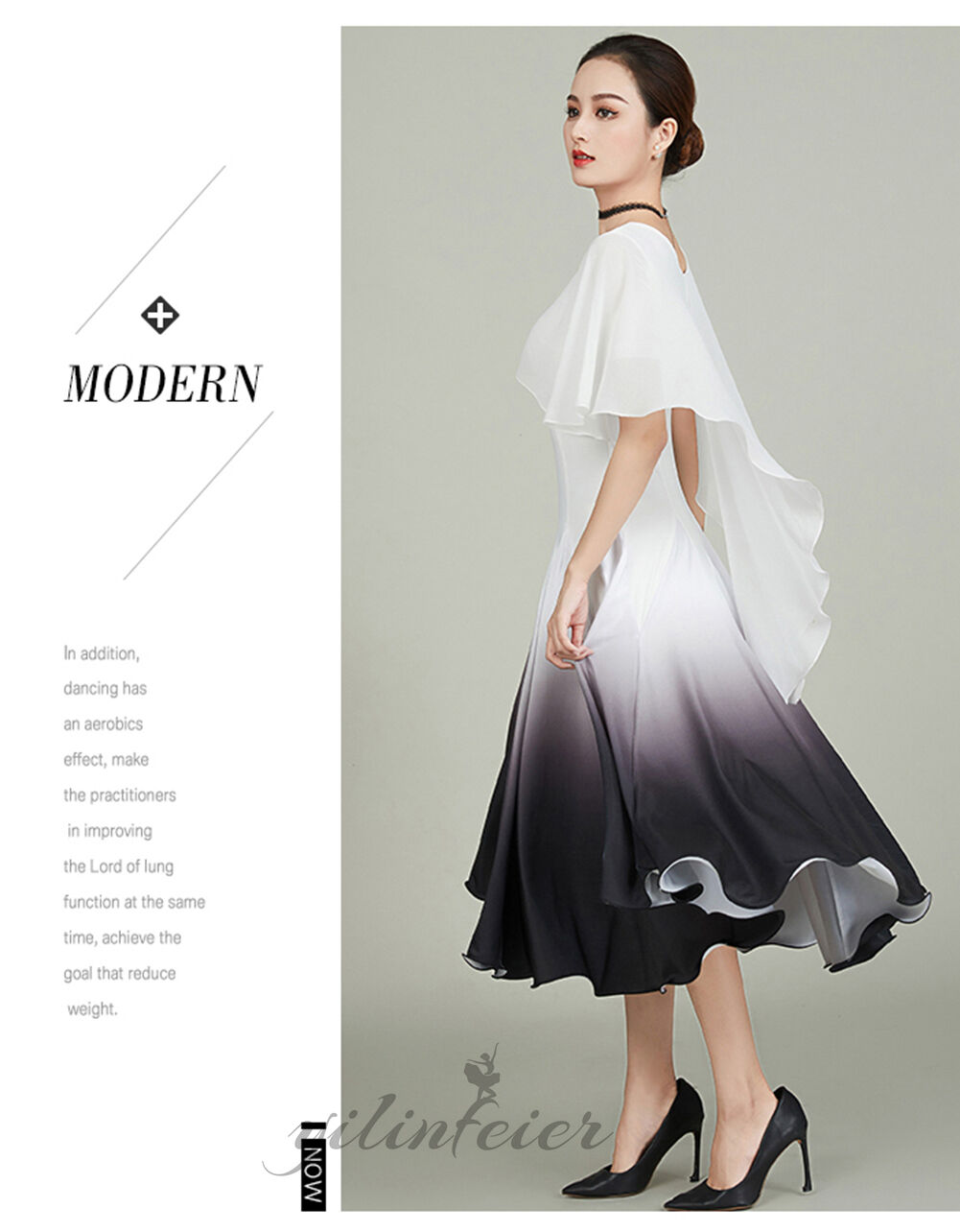 大きなスイングスカートは、360度に達することができ、さまざまなデイシング姿勢に合わせて、回転したりダイナミックな動きをしたりするのに最適です。 現代の叙情的/バレエダンサーに最適