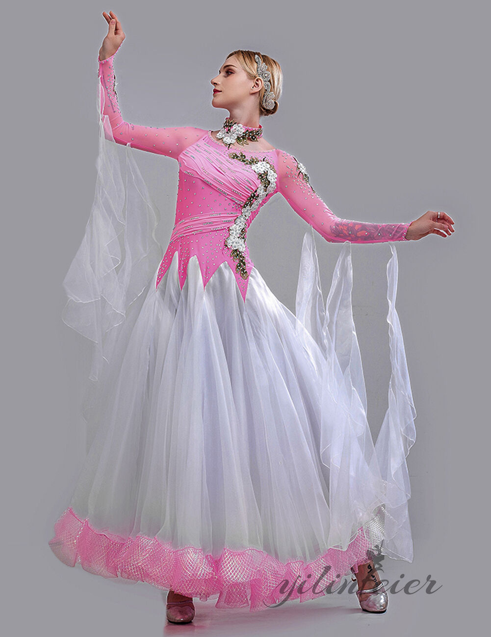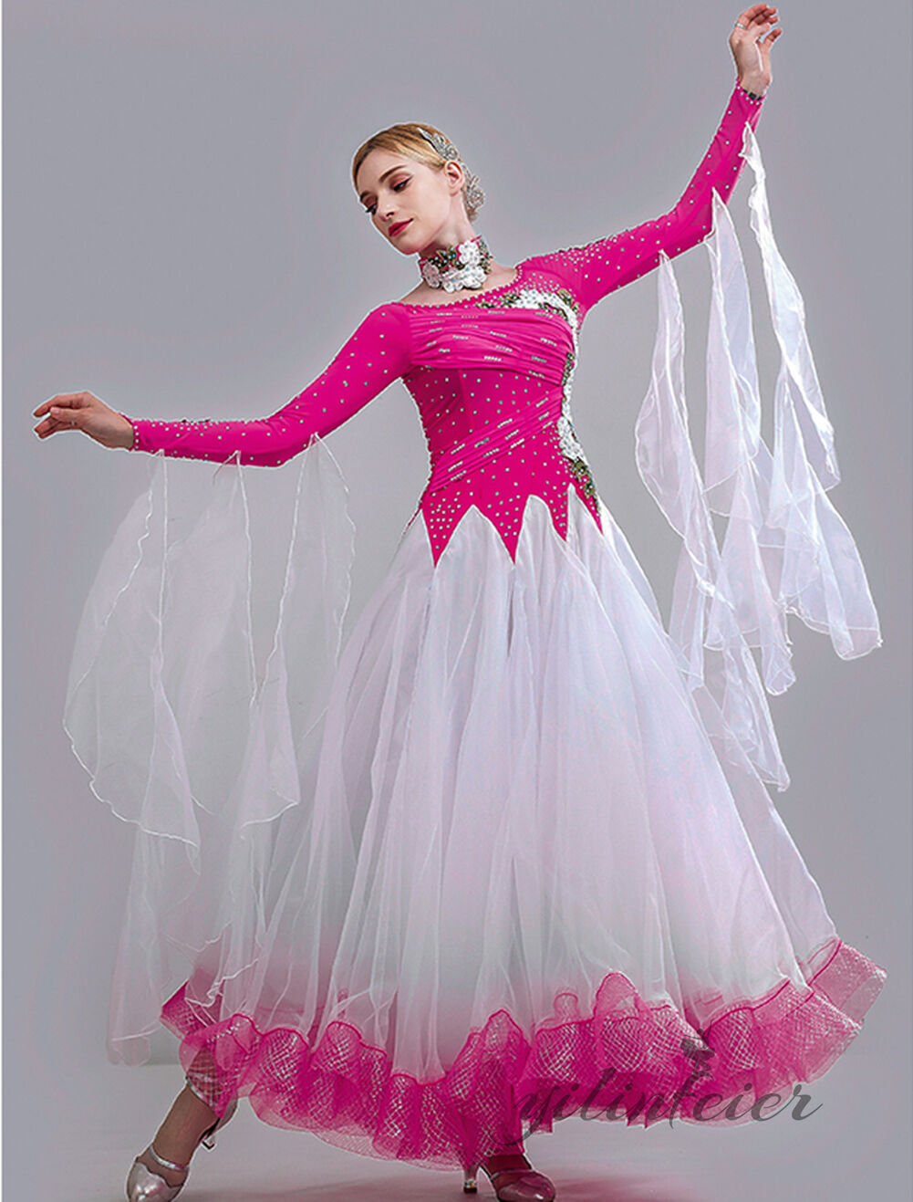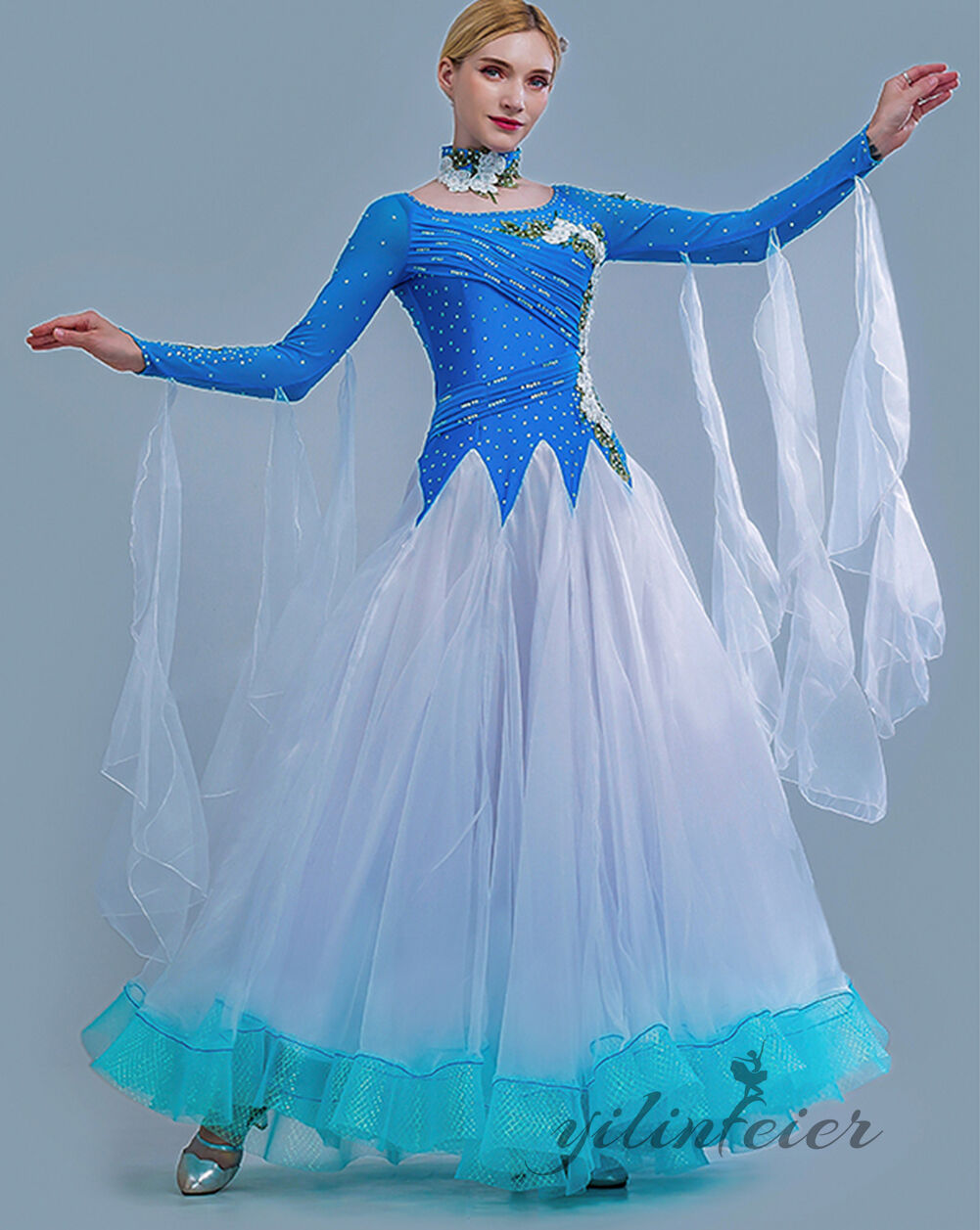 スタンダードドレス 社交ダンス レディース ダンスドレス レディース 競技ダンス 発表会 コンテスト コンクール エレガント 大合唱衣装 フラワー衣装 モダンダンス 衣装 開場ドレス