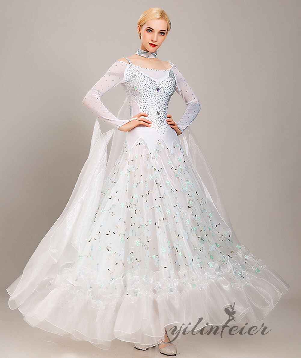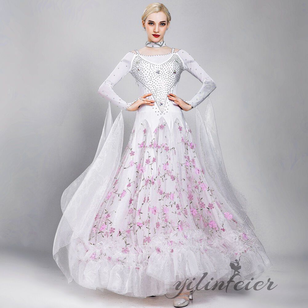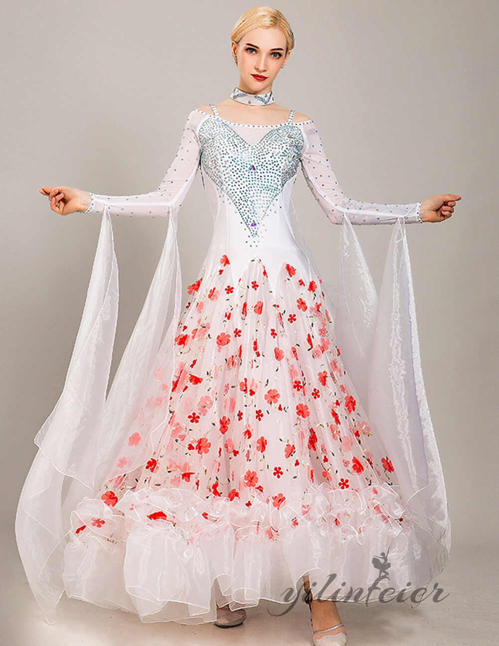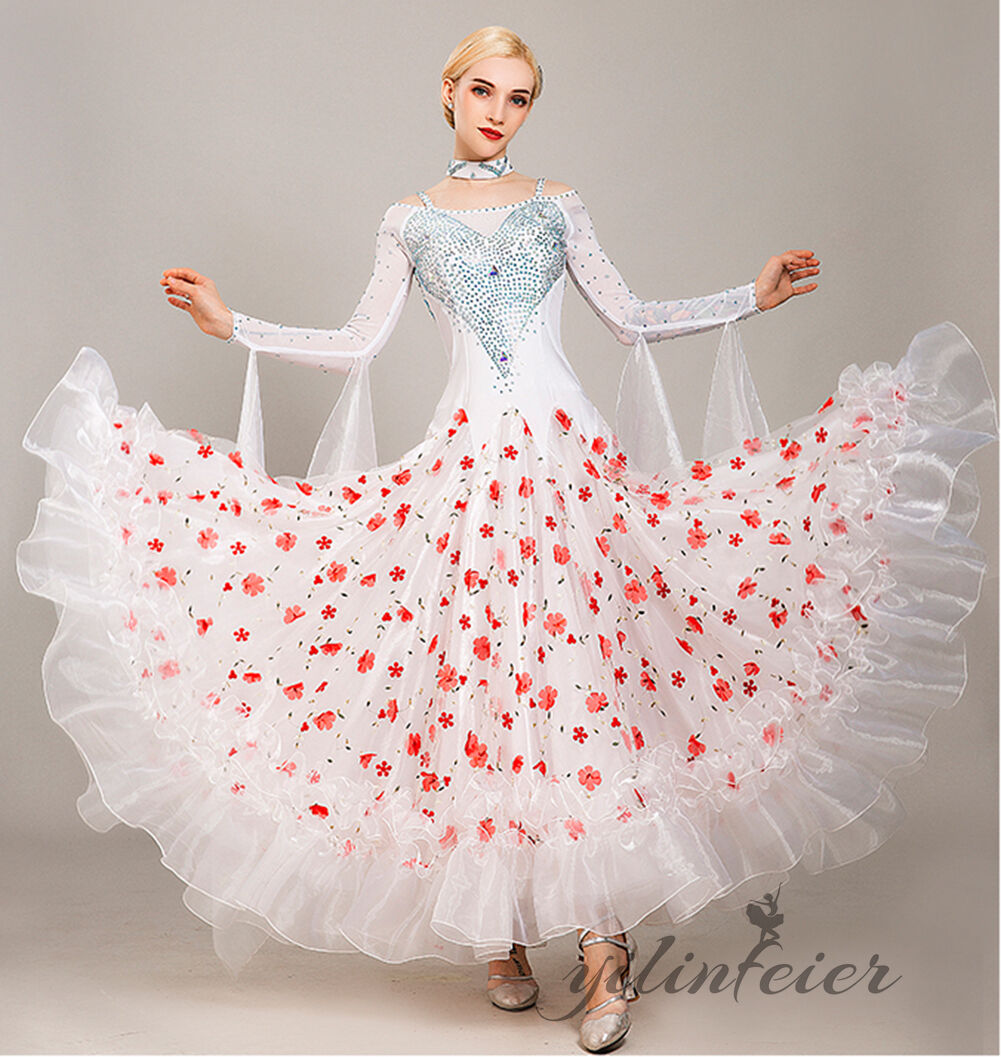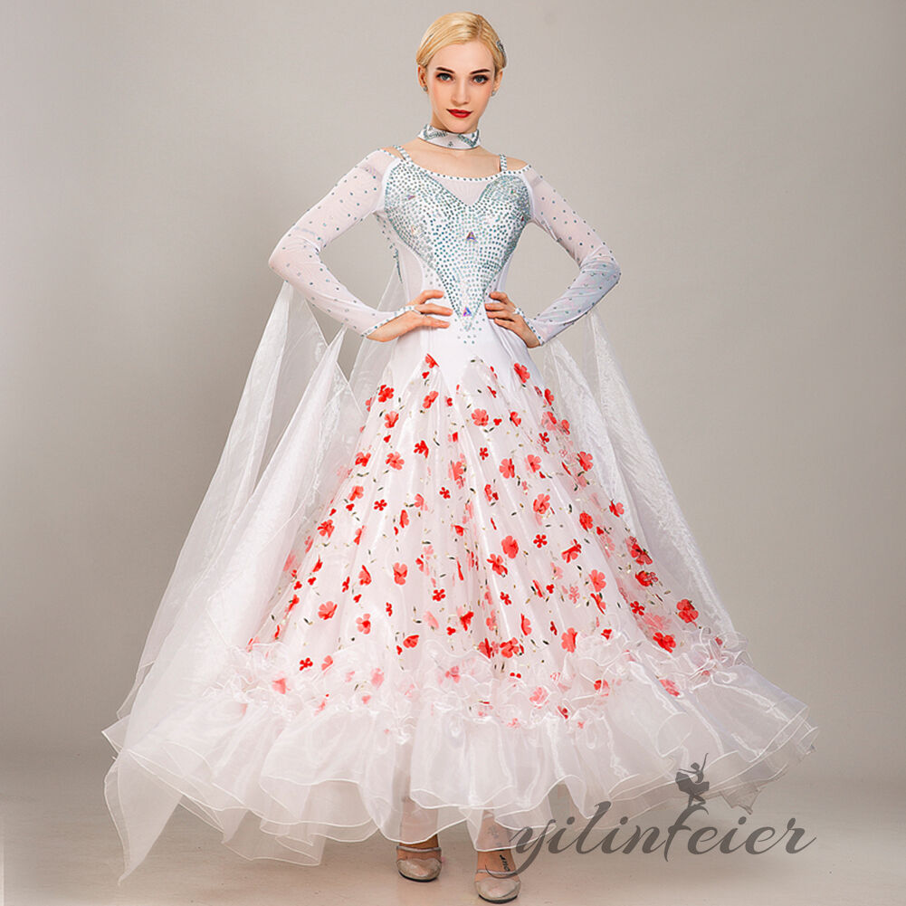 スタンダードドレス 社交ダンス レディース ダンスドレス レディース 競技ダンス 発表会 コンテスト コンクール エレガント 大合唱衣装 フラワー衣装 モダンダンス 衣装 開場ドレス