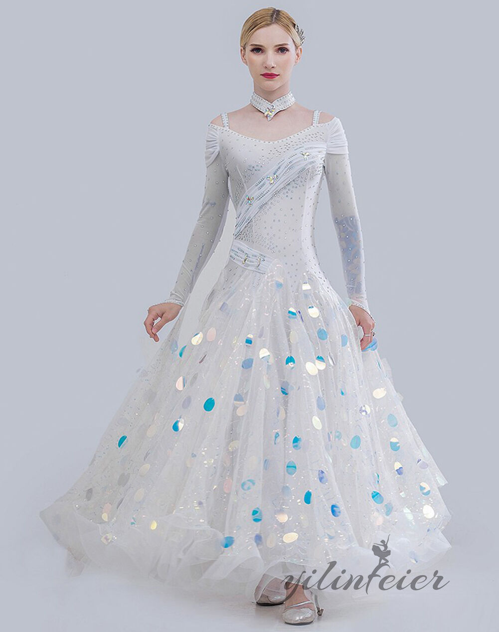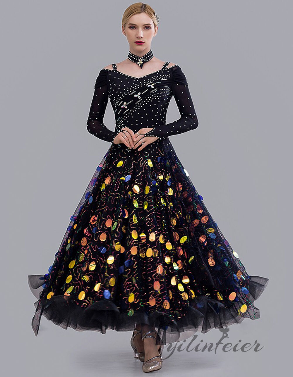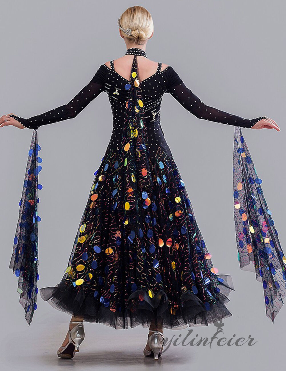 社交ダンス衣装として、またステージ衣装として、華やかさを演出できる魅力的な衣装です。