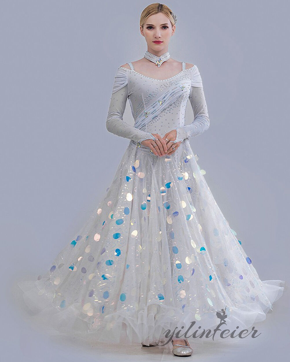 3XL/バスト93~96cm ウエスト79~83cm ヒップ99~103cm 着丈135cm 身長170cmぐらい 上着部分丈43cm特微 着た時・歩いた時のシルエットがとても美しい。軽くてフレアもたっぷり入っているので綺麗に揺れます。ストレッチ素材で動きやすく、練習等におすすめのレディース社交ダンスウェアです特微 デザインが上品で、工芸が細かくて、本当の上品です。