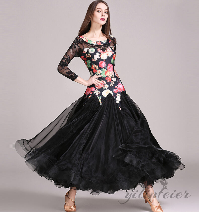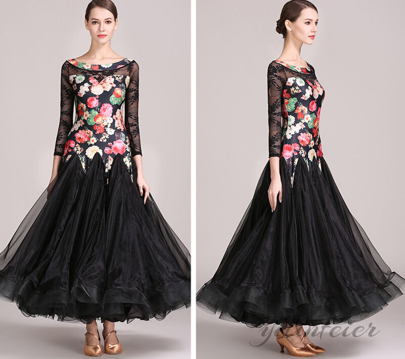 スタンダードドレス 社交ダンス レディース ダンスドレス レディース 競技ダンス 発表会 コンテスト コンクール エレガント 大合唱衣装 フラワー衣装 モダンダンス 衣装 開場ドレス