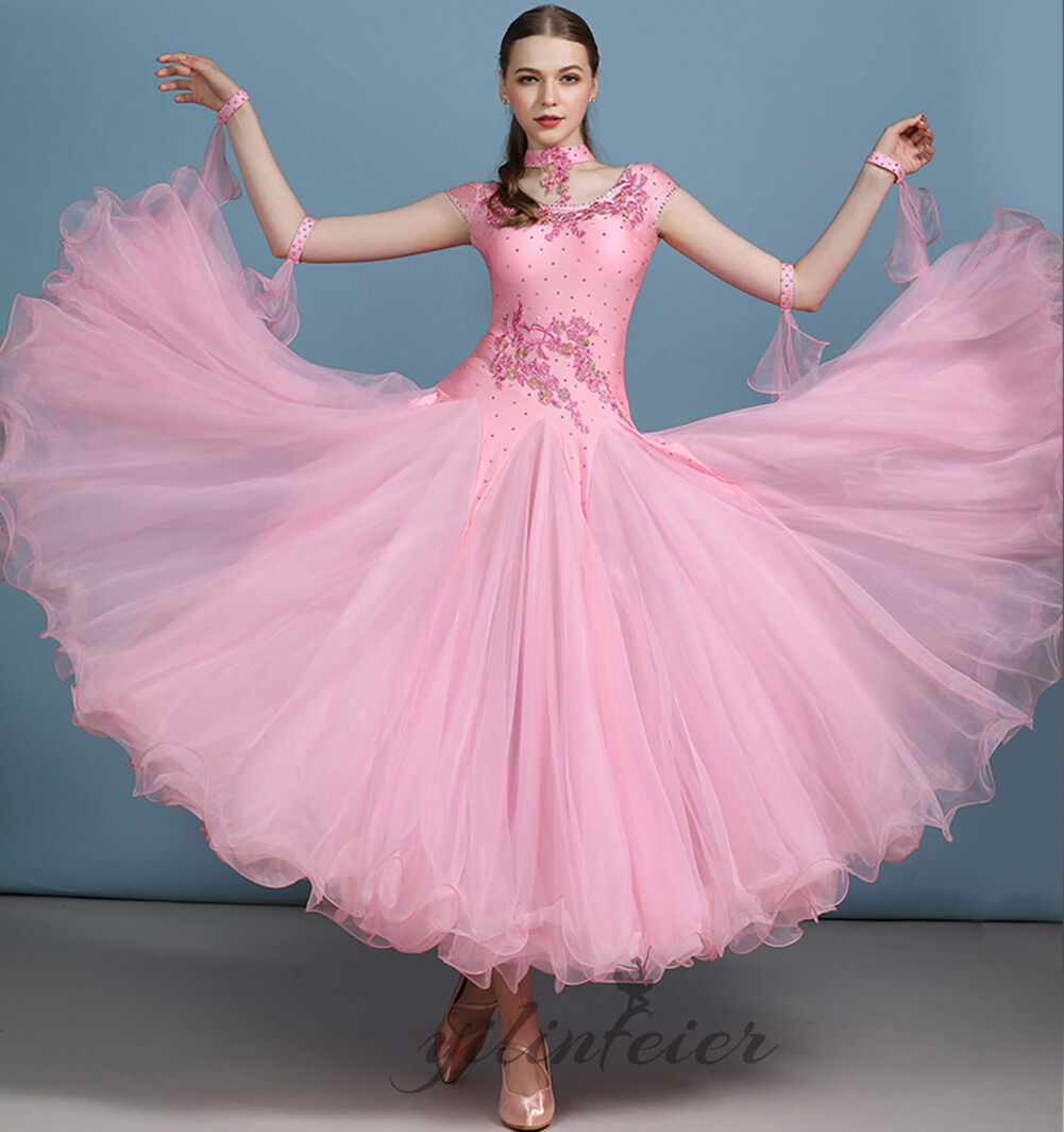スタンダードドレス 社交ダンス レディース ダンスドレス レディース 競技ダンス 発表会 コンテスト コンクール エレガント 大合唱衣装 フラワー衣装 モダンダンス 衣装 開場ドレス