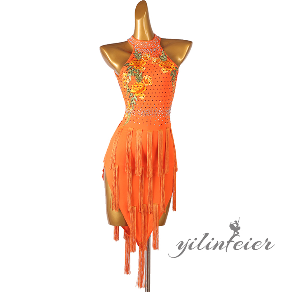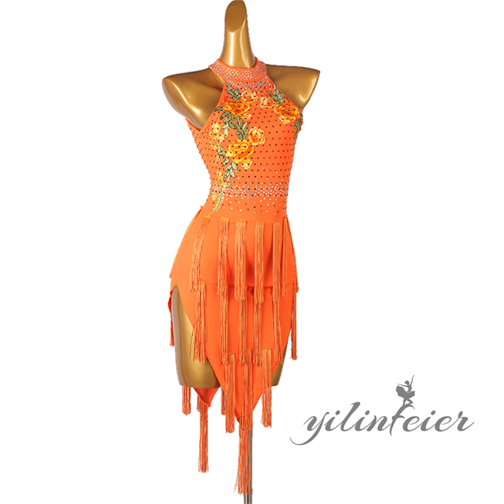 ラテンダンス発表会用ドレス ワルツ ラテン系 ダンスドレス ワルツ用 社交ダンスドレス 発表会用 競技ダンス 豪華 イベント フラワー ラテン 開場ドレス ワンピース衣装 ラテンワンピース