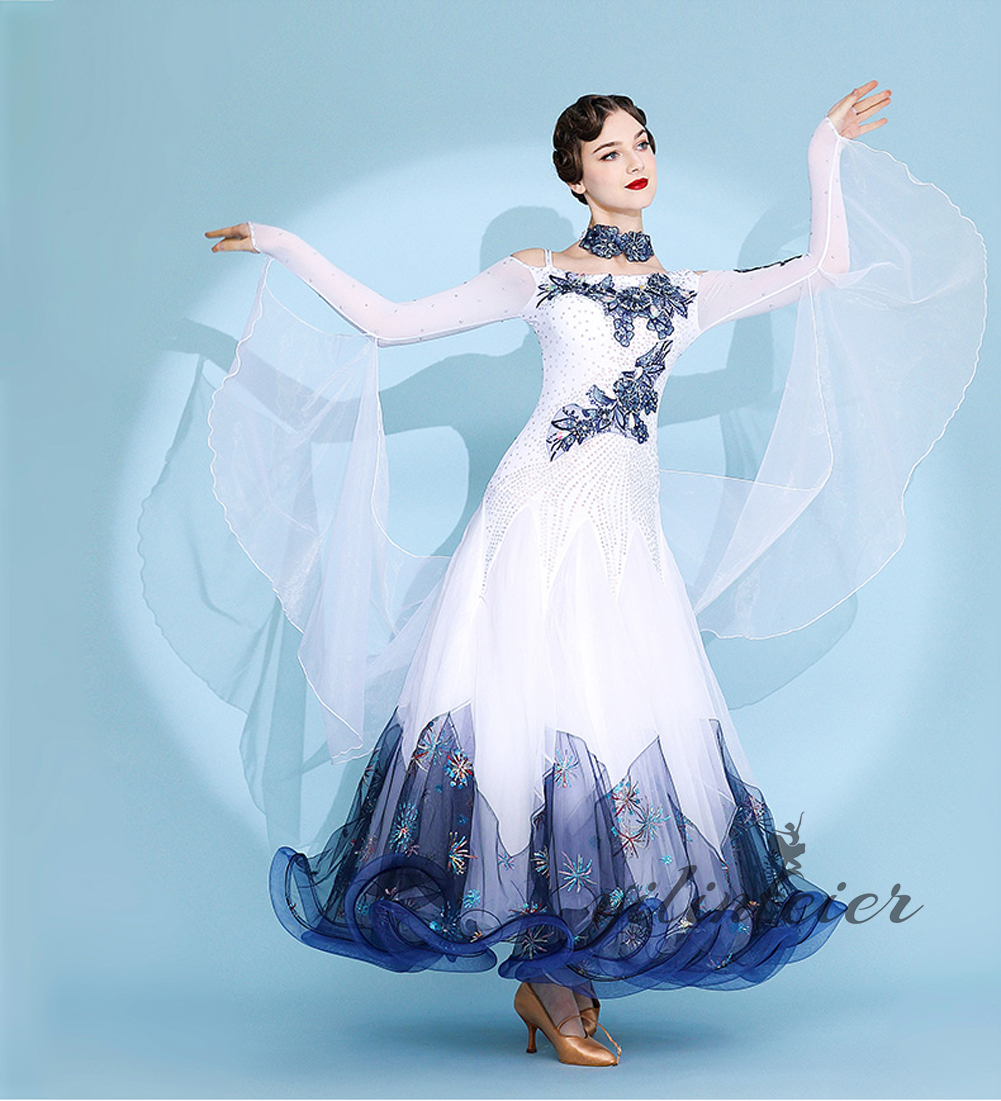 社交ダンス レディース ダンスドレス 衣装 ワルツ ワンピース イベント 大きい裾 モダン ドレス 社交ダンス衣装 広がる裾 スタンダード レッスン着 演出用 高級感 踊りドレス 大人気