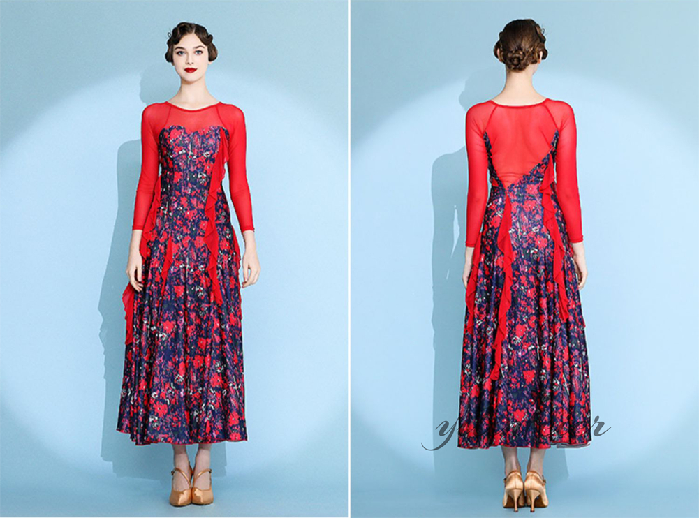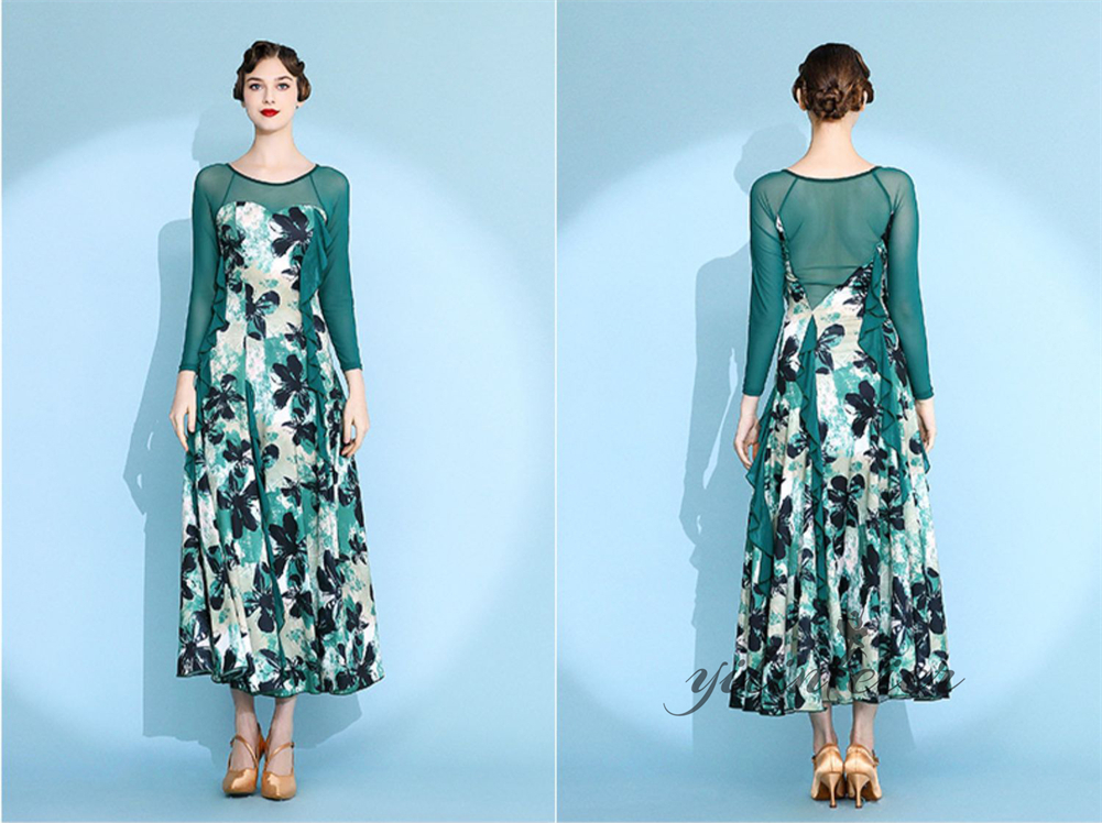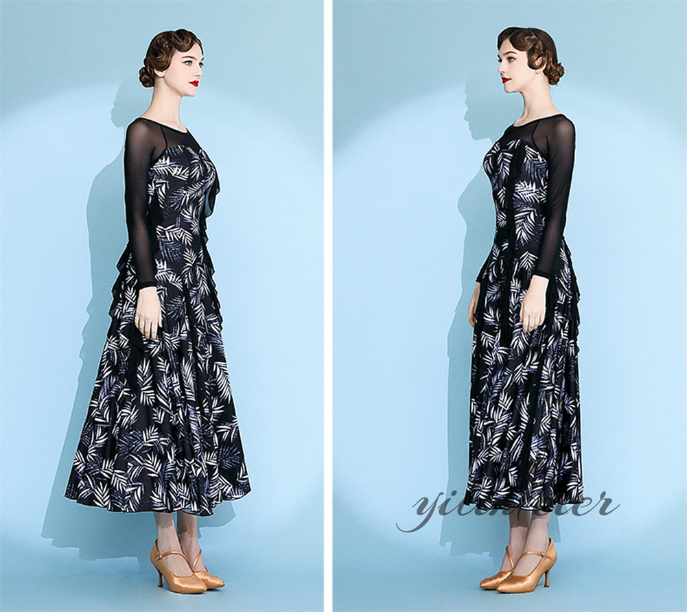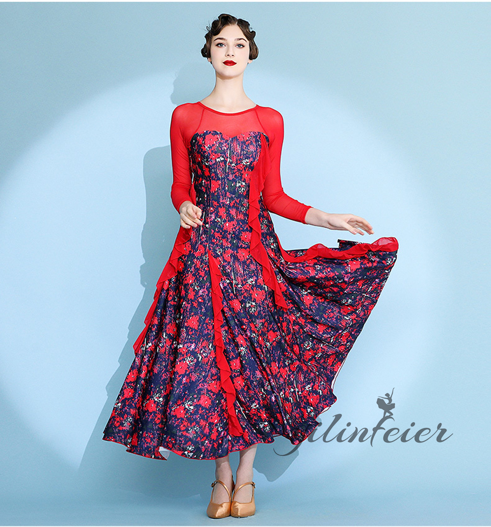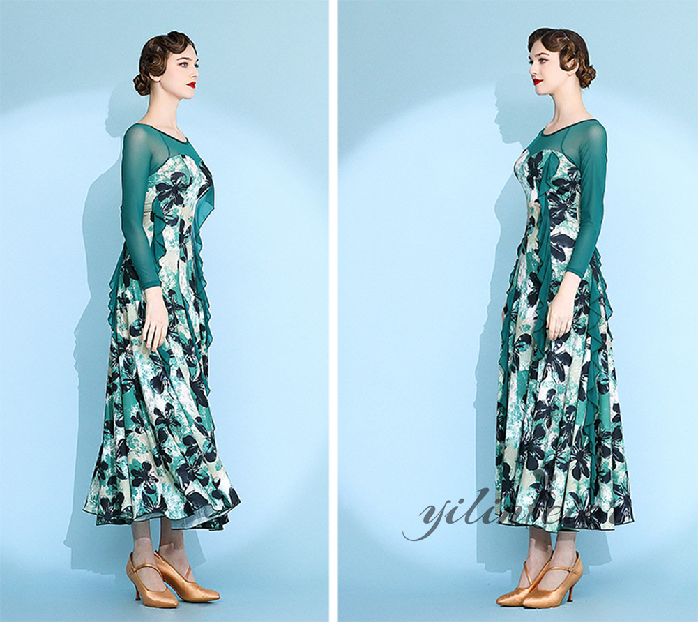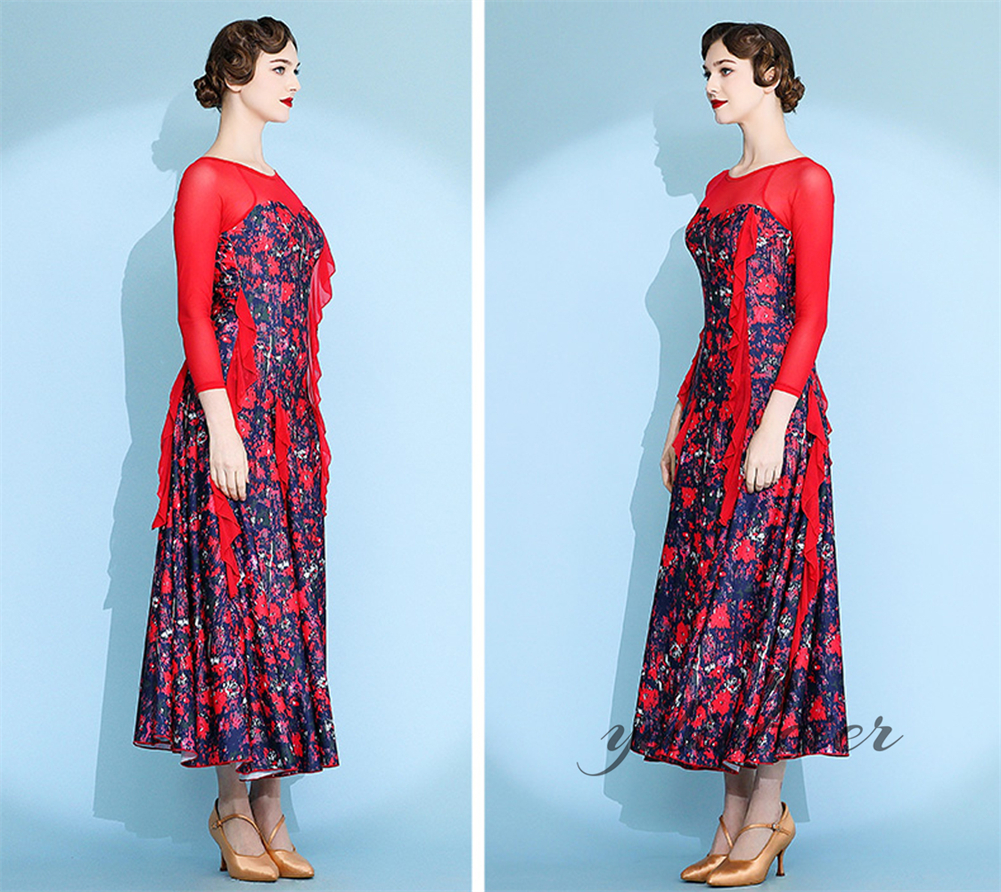社交ダンス レディース ダンスドレス 衣装 ワルツ ワンピース イベント 大きい裾 モダン ドレス 社交ダンス衣装 広がる裾 スタンダード レッスン着 演出用 高級感 踊りドレス 大人気