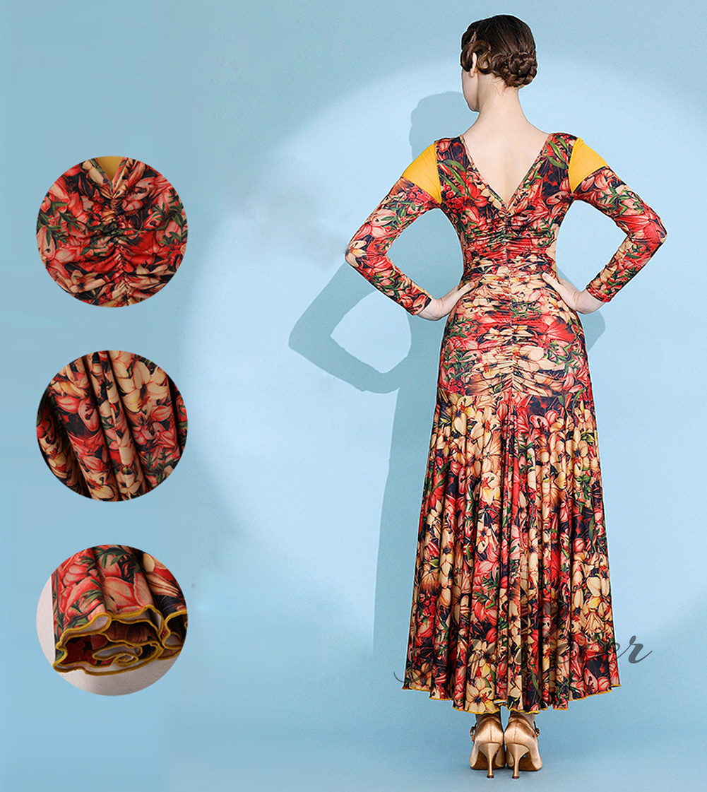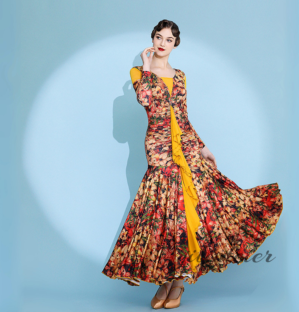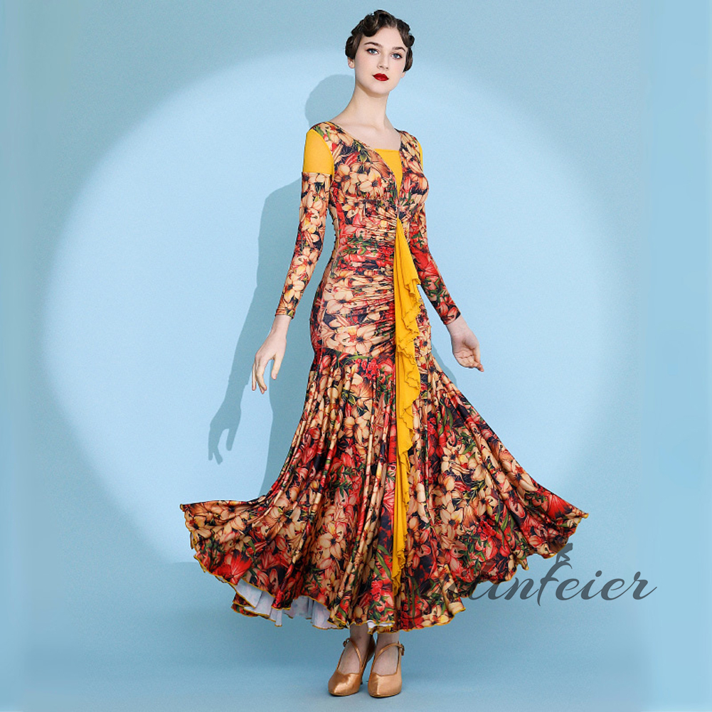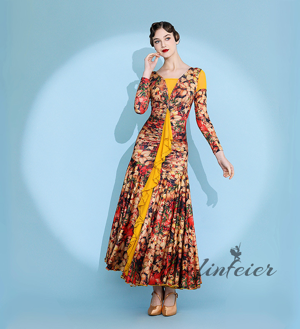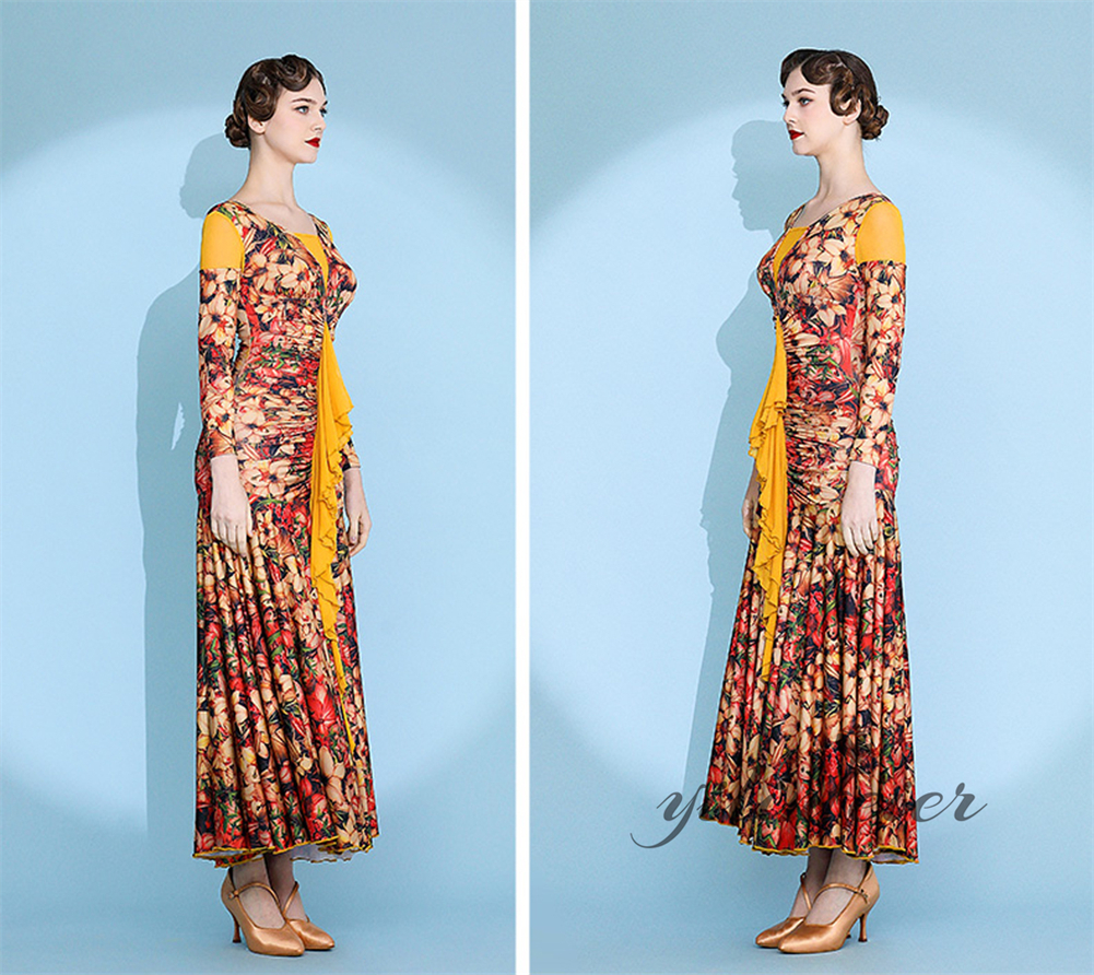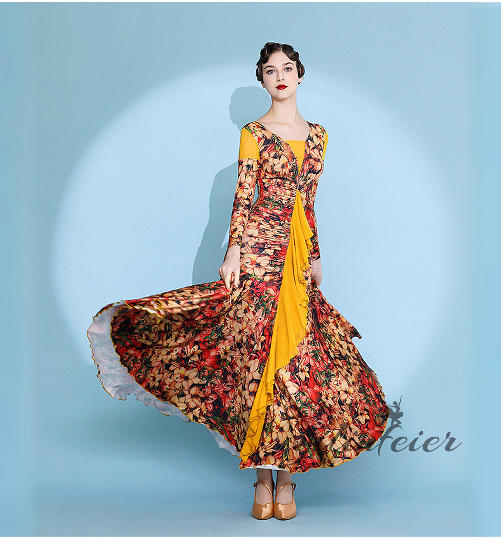 社交ダンス レディース ダンスドレス 衣装 ワルツ ワンピース イベント 大きい裾 モダン ドレス 社交ダンス衣装 広がる裾 スタンダード レッスン着 演出用 高級感 踊りドレス 大人気