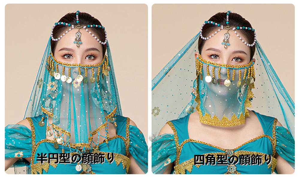 (水色の顔飾りは半円型で、ワインレッドの顔飾りは四角型でございます。なお、顔飾りが指定も可能です。)★適用場合★ 舞台、発表会では優雅で繊細かつ情熱的な貴女の舞いがスポットライトの中で拍手を浴びる事間違いなし。ハロウィンでのコスプレ衣装、忘年会や新年会、カラオケでの演出としても使えるかも。【注意事項】 ▼商品の特性の上返品交換は一切対応しないので、ご了承ください。