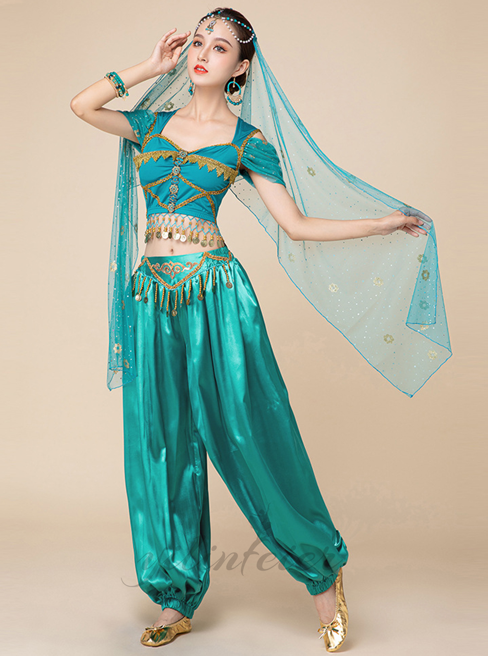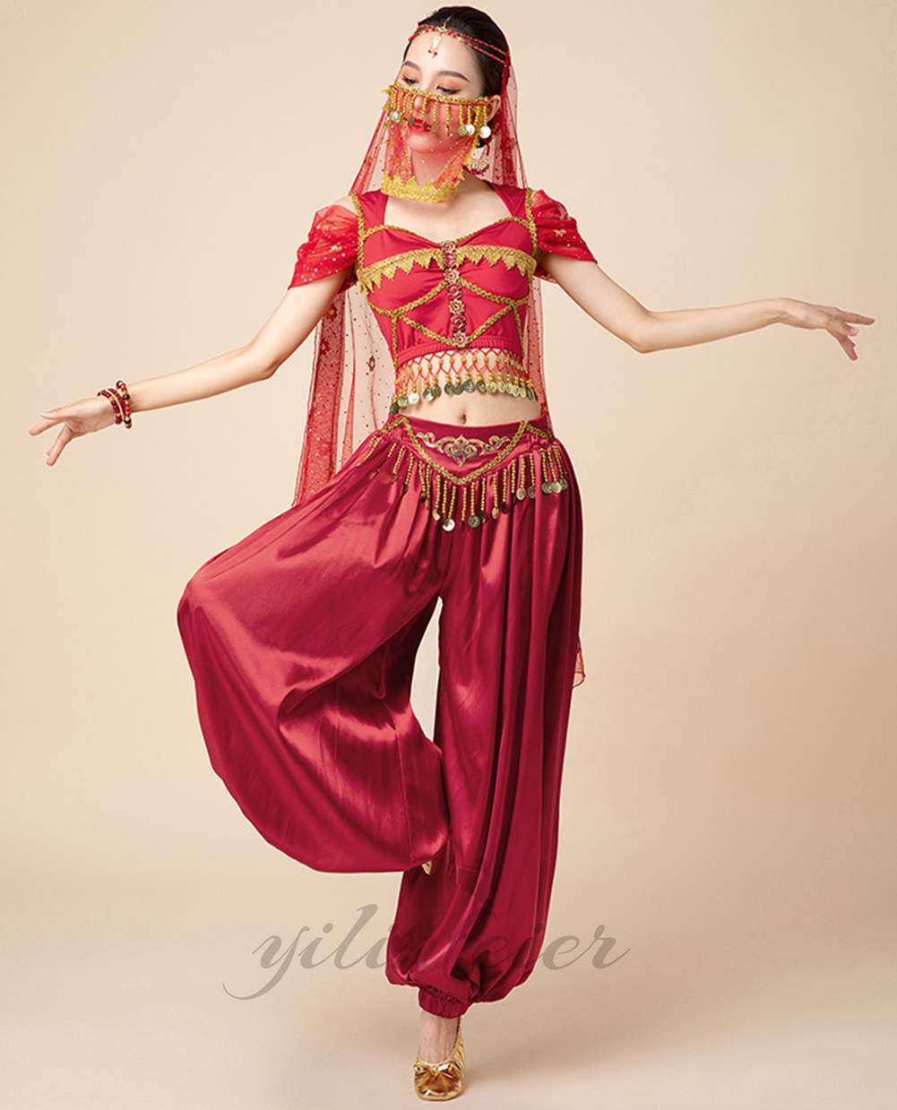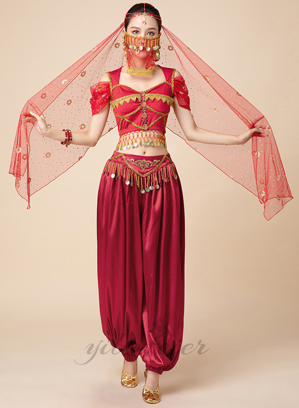 ★素材★ ポリエステル★内容★ 上衣+ズボン+ベールヘッド+イヤリング+手飾り+顔飾り