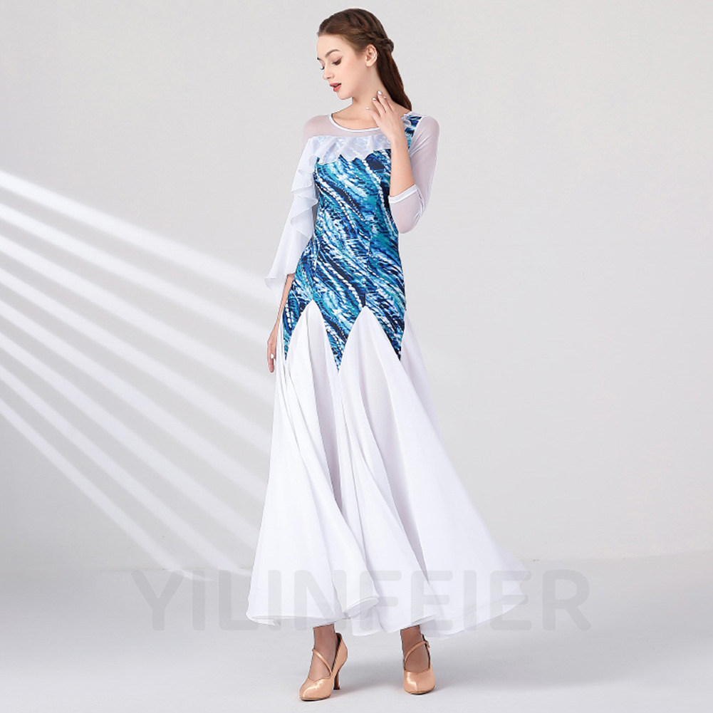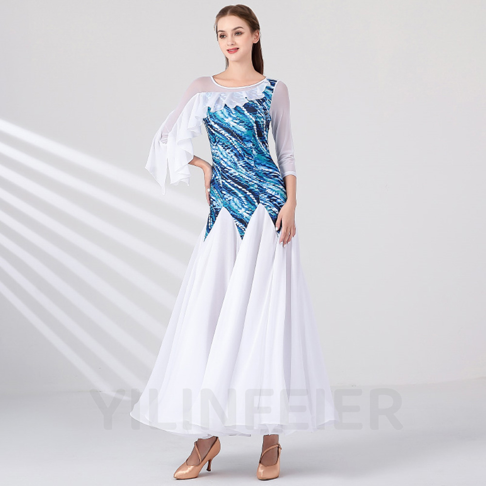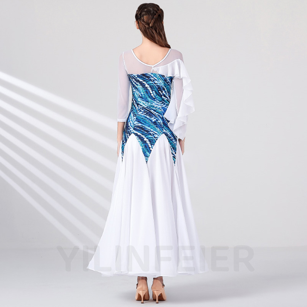 ★女性ワルツダンスドレス大きい裾ワルツに向きセクシーな踊りドレス ダンスドレス 舞踏 踊り ドレス 発表会用ドレス ワンピース 舞台服 社交ダンスドレス