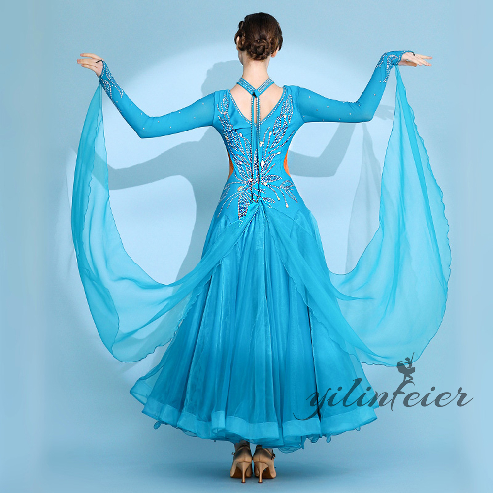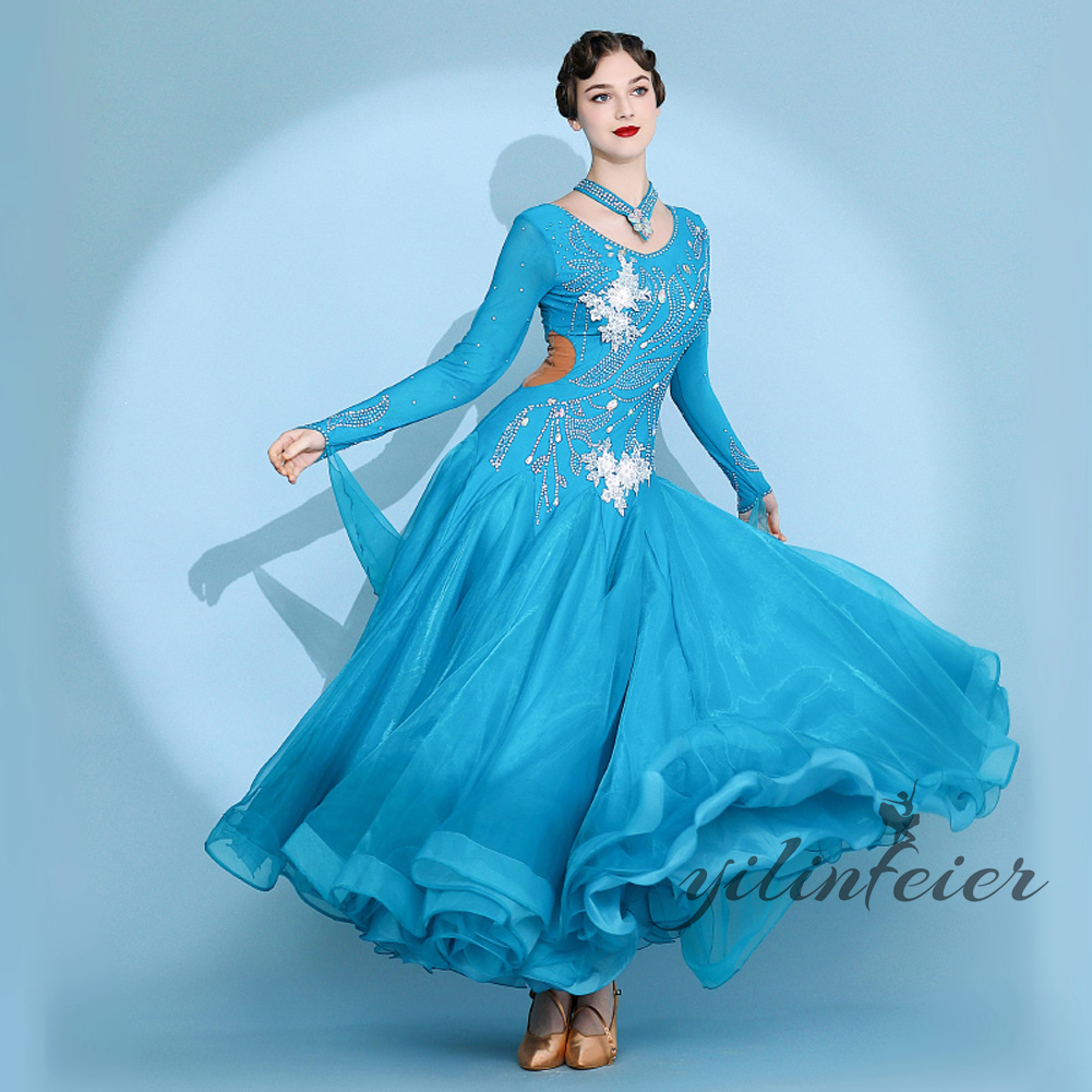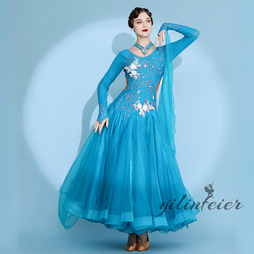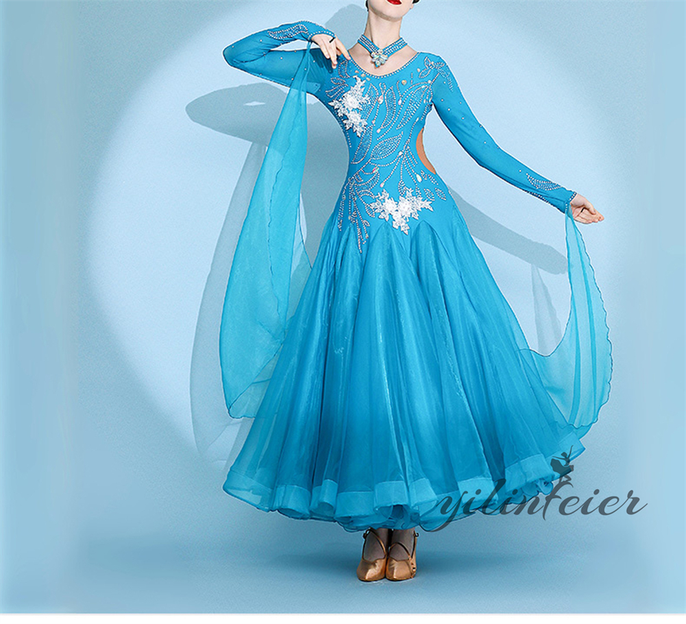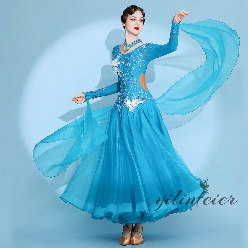 社交ダンス レディース ダンスドレス 衣装 ワルツ ワンピース イベント 大きい裾 モダン ドレス 社交ダンス衣装 広がる裾 スタンダード レッスン着 演出用 高級感 踊りドレス 大人気