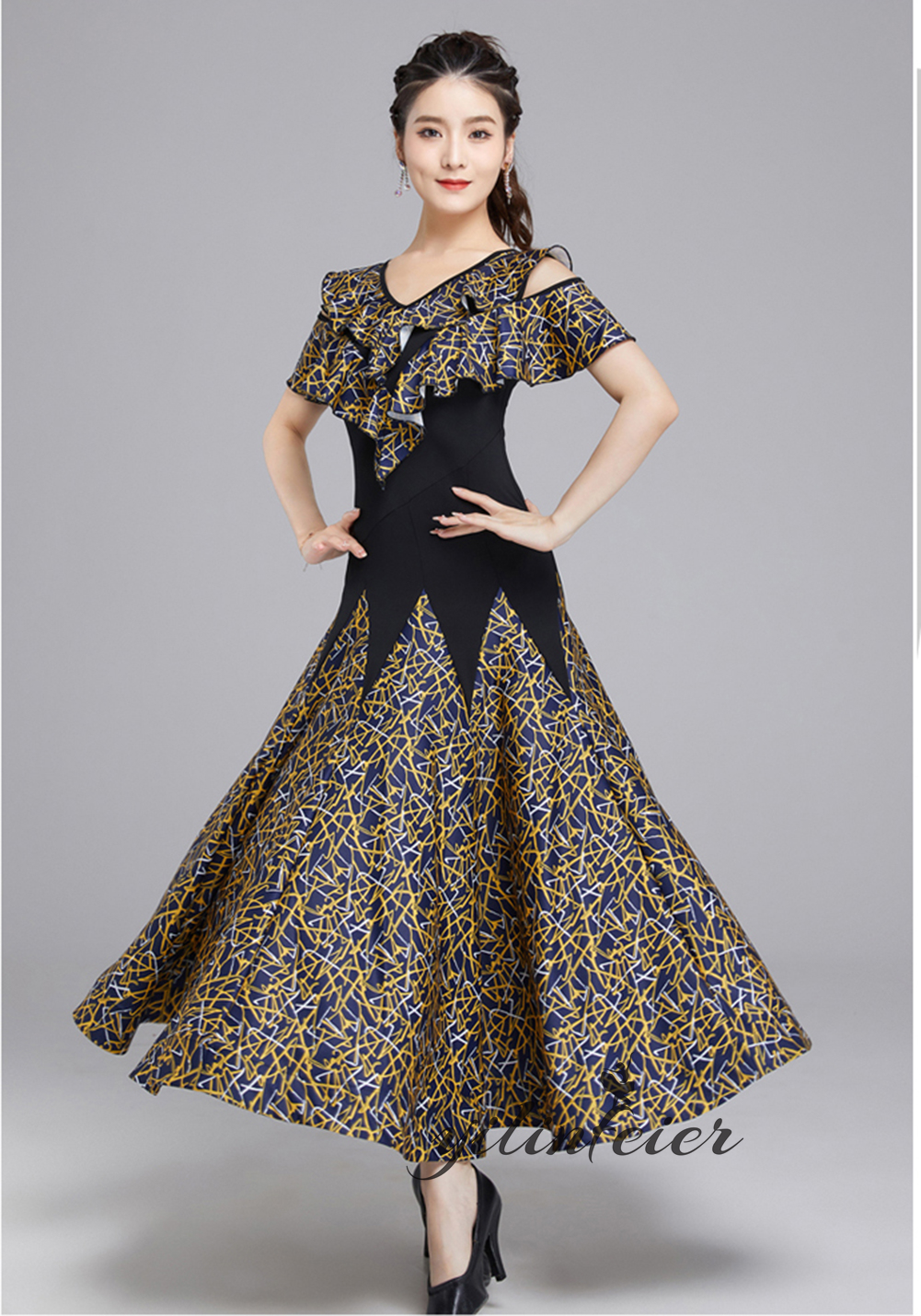 XXL/バスト90-100cm ウエスト82-90cm 着丈120cm 体重65-70KG特微 着た時・歩いた時のシルエットがとても美しい。軽くてフレアもたっぷり入っているので綺麗に揺れます。ストレッチ素材で動きやすく、練習等におすすめのレディース社交ダンスウェアです特微 デザインが上品で、工芸が細かくて、本当の上品です。
