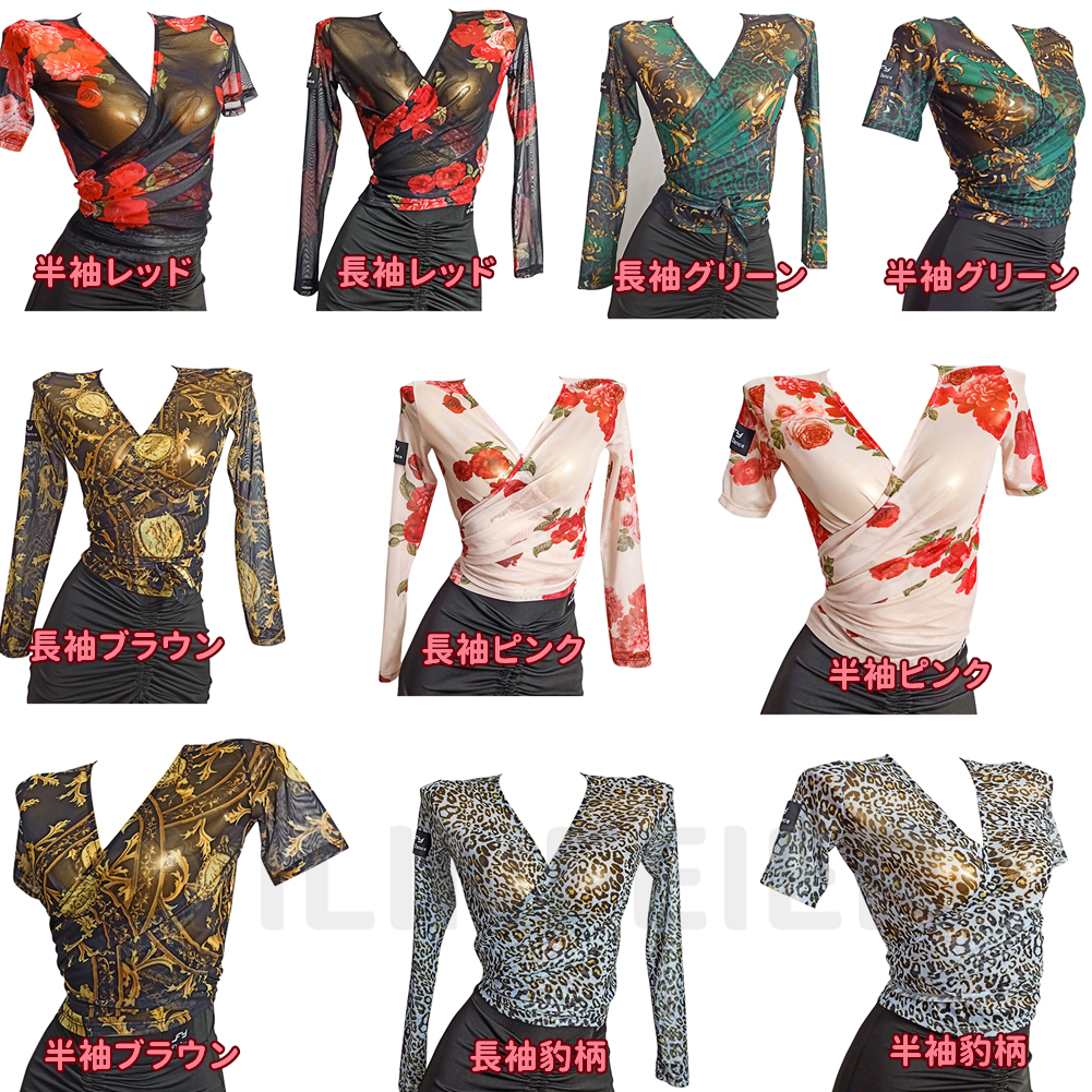 カラー: 半袖グリーン 長袖グリーン 半袖レッド 長袖レッド 半袖豹柄 長袖豹柄 半袖ピンク 長袖ピンク 半袖ブラウン 長袖ブラウン