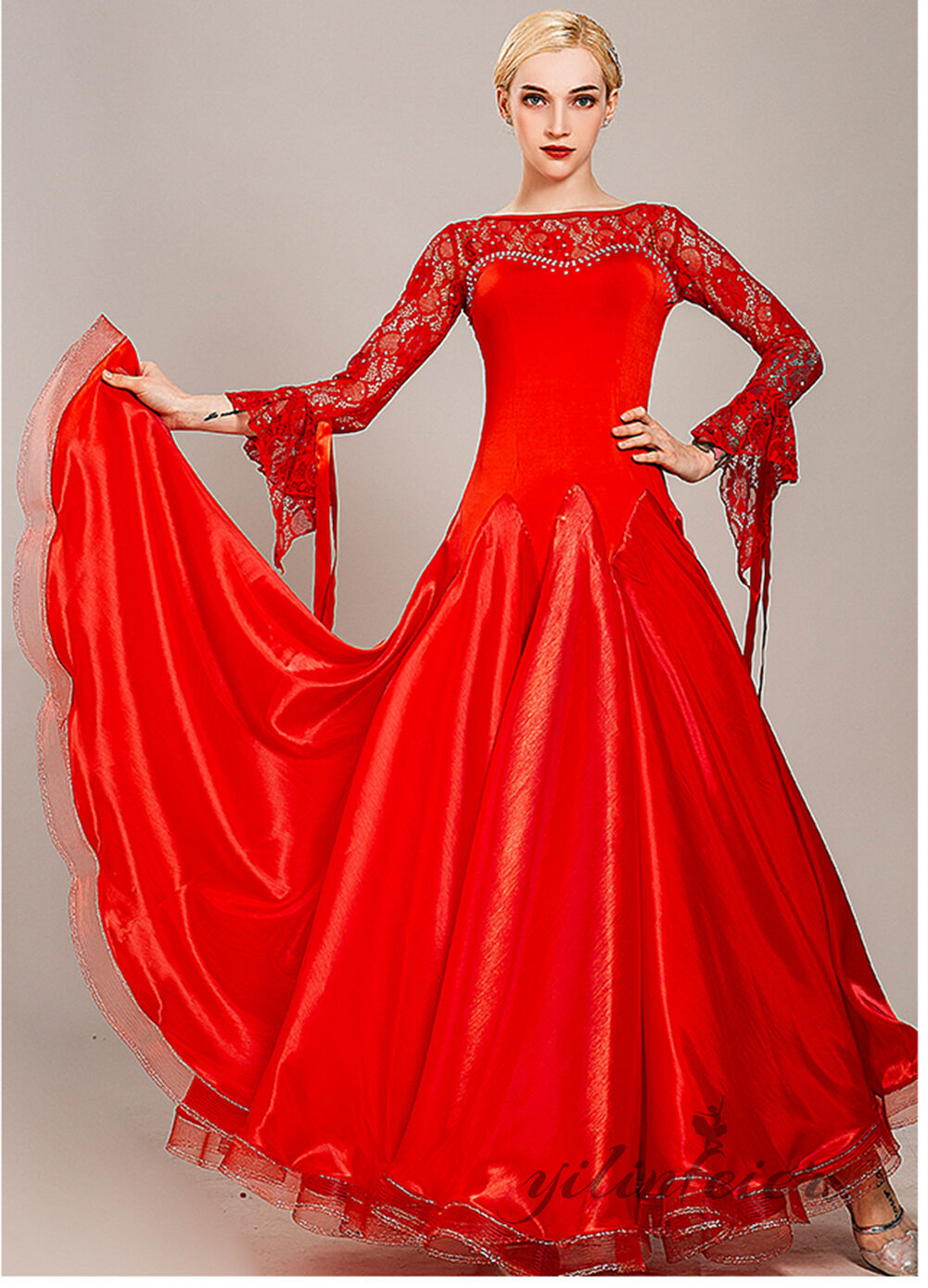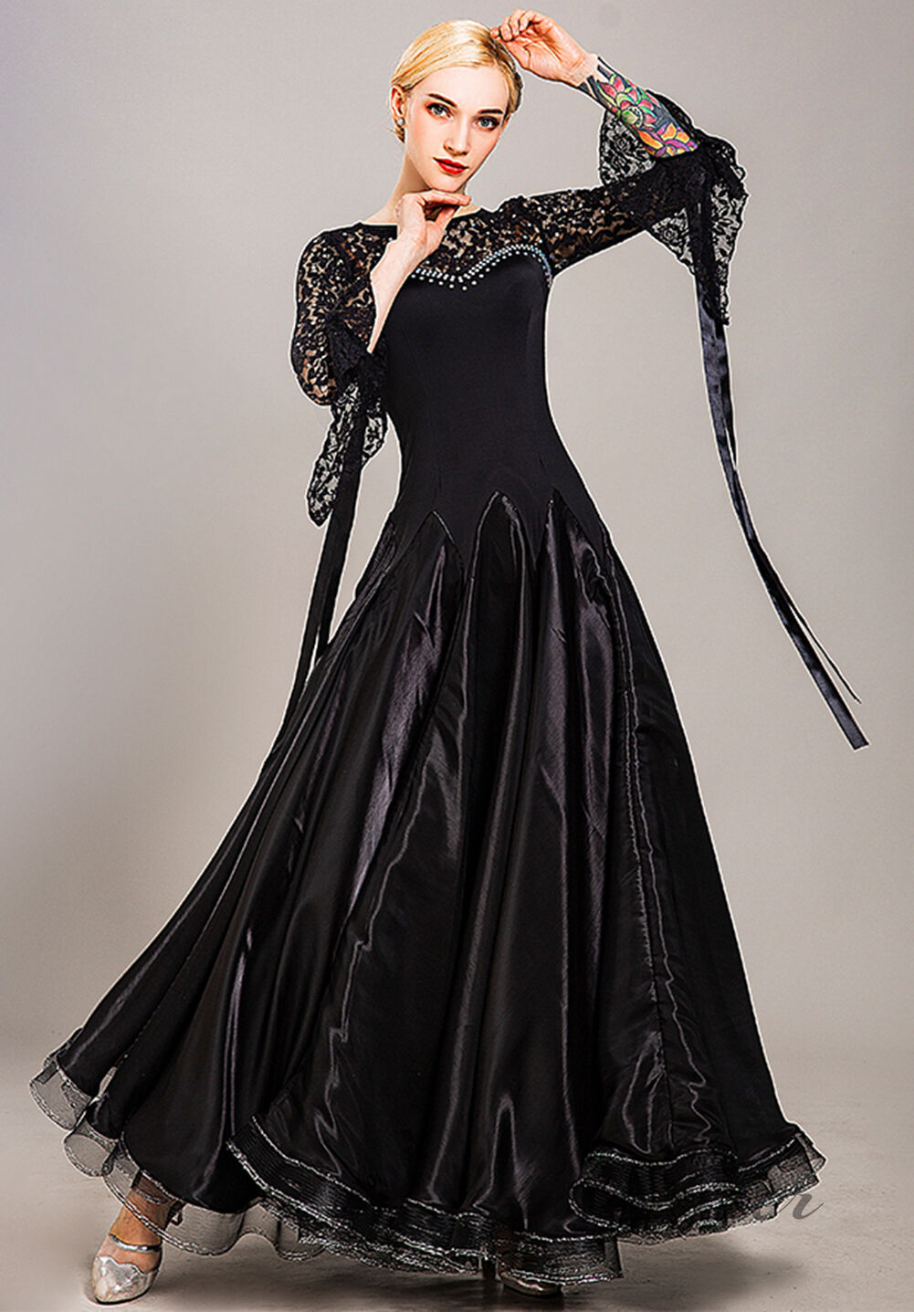 3XL/バスト93~96cm ウエスト79~83cm ヒップ99~103cm 着丈135cm 身長170cmぐらい 上着部分丈43cm特微 着た時・歩いた時のシルエットがとても美しい。軽くてフレアもたっぷり入っているので綺麗に揺れます。ストレッチ素材で動きやすく、練習等におすすめのレディース社交ダンスウェアです特微 デザインが上品で、工芸が細かくて、本当の上品です。